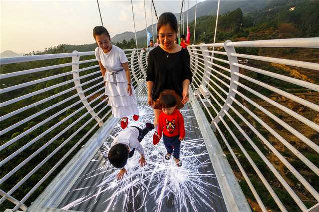 玻璃吊桥真的很赞,100米的高空呼呼呼风声还有特效,就喜欢这样的刺激。农家菜味道也很地道,吃得很开心。古村落里的街道干净整洁,村民都很和善,还会主动跟我们打招呼,听他们唠嗑很温馨。建议多增加一些活动,这样孩子比较不会无聊。再者果园的种类再多一点了,吃货来自内心的呼唤,强烈无比的!