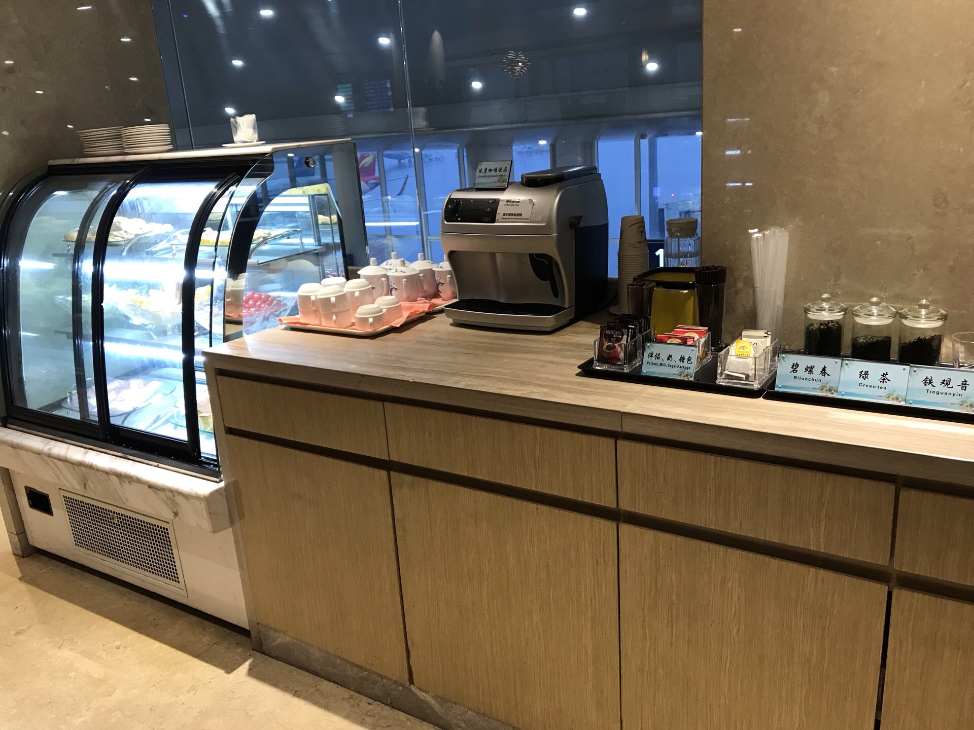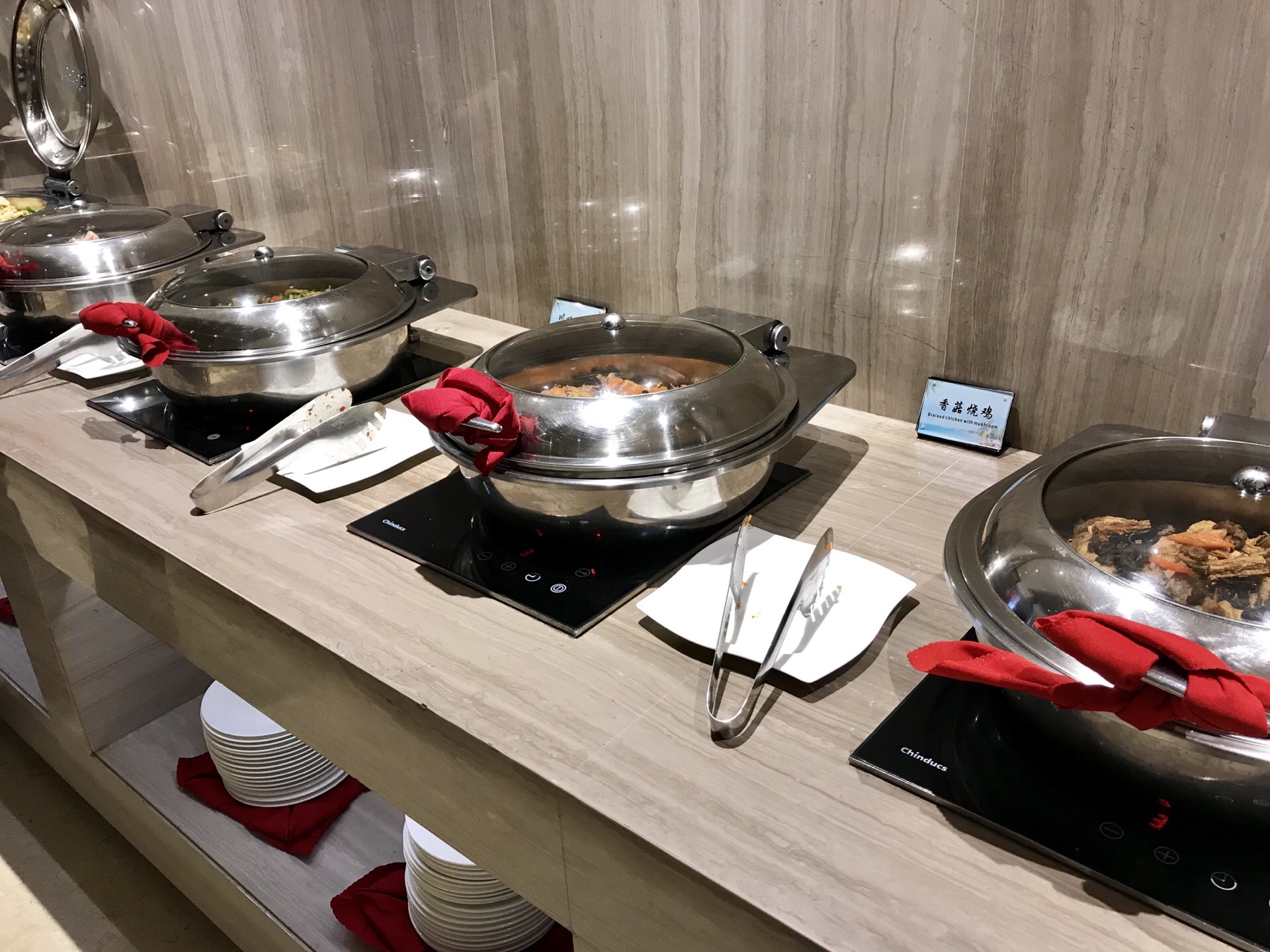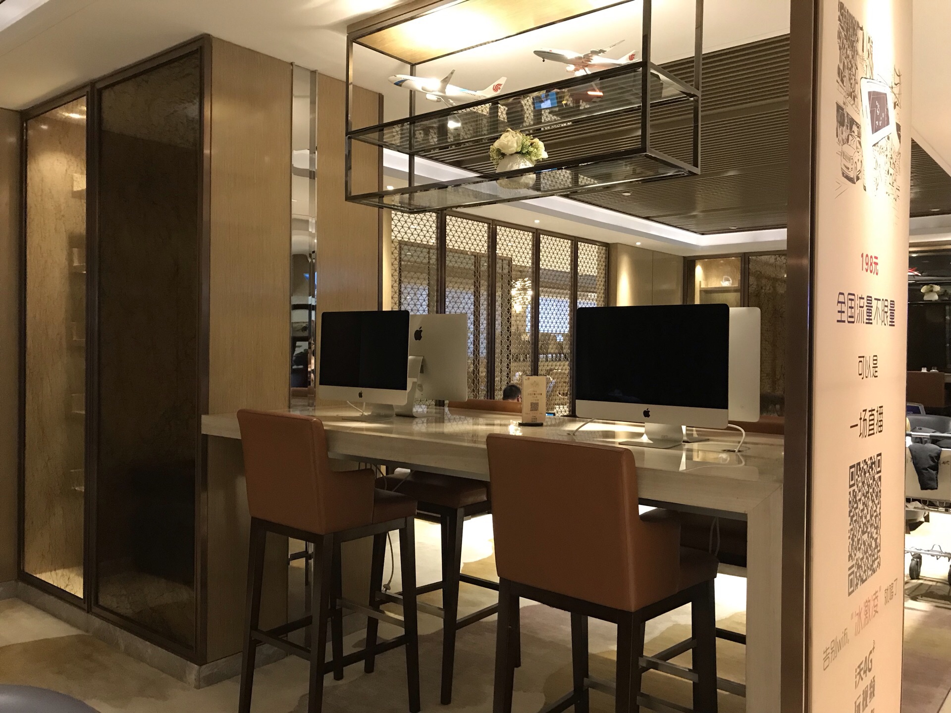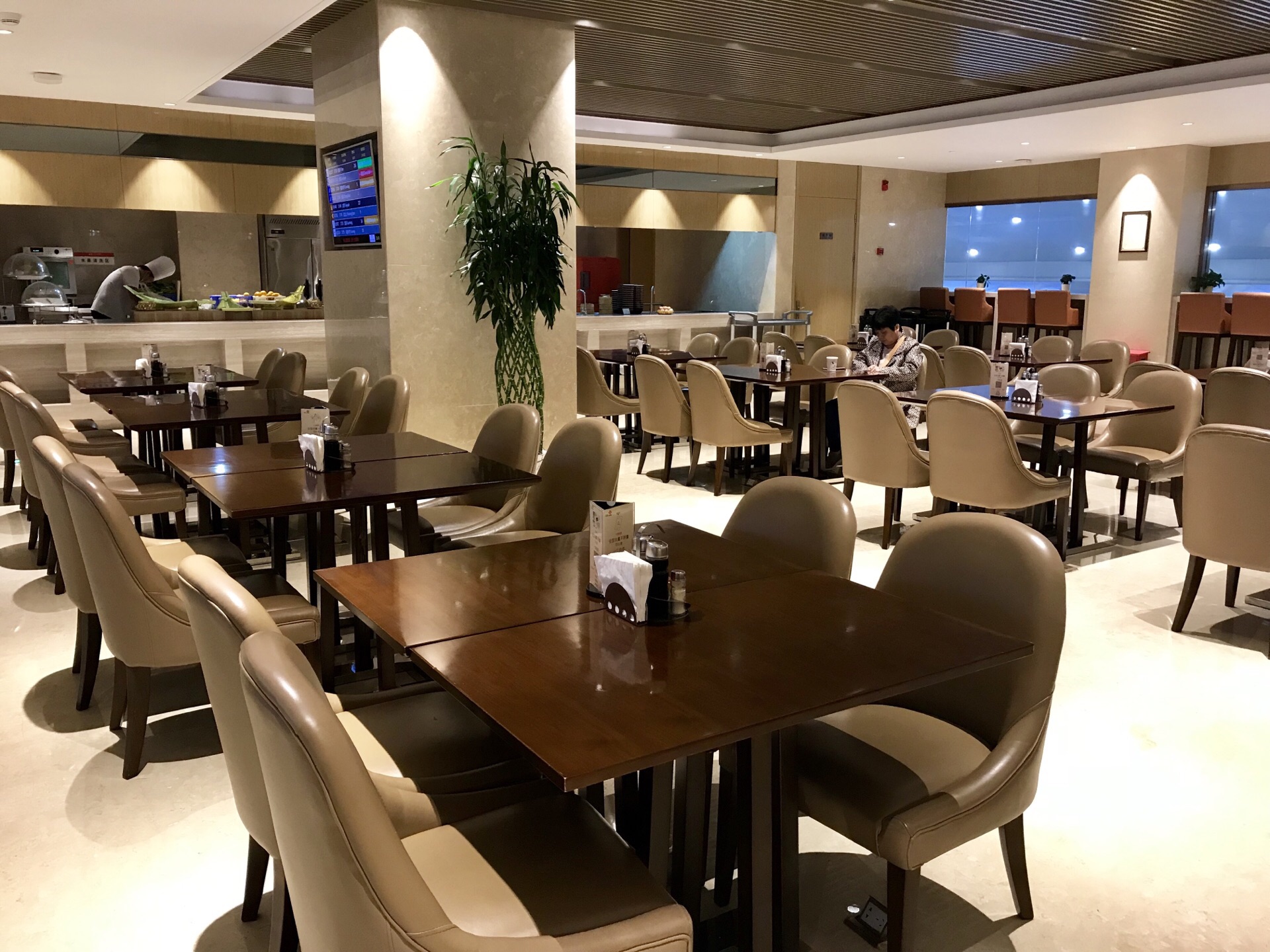 机场有个不错的商务休息室,东航金银卡可进商务休息室,休息室空间颇宽敞。一进门一排玻璃展柜展示各大品牌包包鞋子化妆品。 门口有一个电视区放着沙发位;往里走电脑上网区及个一个大餐厅,正好晩饭点赶上出餐,味道还好。餐厅旁还有个台球区供客人娱乐放松。