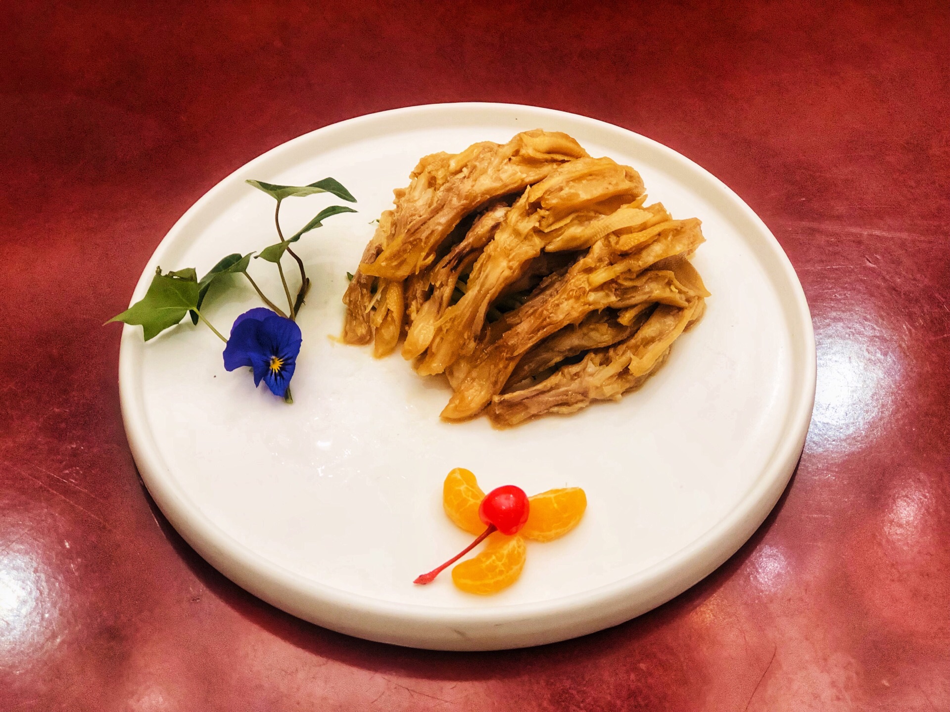 「金牌烤鸭」 北平吃烤鸭讲究四吃,第三吃比较费火候和精力,所以渐渐失传,一般能吃到的都是大鸭带饼。 做饼讲究花椒水出剂,温火贴抓成饼,最主要是得薄而不粘,才能咸麻出香~ 鸭子皮内里的油剔得干净,进嘴仅剩酥脆,蘸白糖吃起来甜香顺口~鸭肉嫩滑有度不失体统,全身涂满了甜面酱仍是张扬跋扈,非得加上白头葱丝清脆瓜条才能妥帖温顺安然睡去,趁这功夫赶紧给他来个包娃娃,愿不愿意的就是他了,张大嘴一口半拉咬下去,酥香甜脆满口开花~