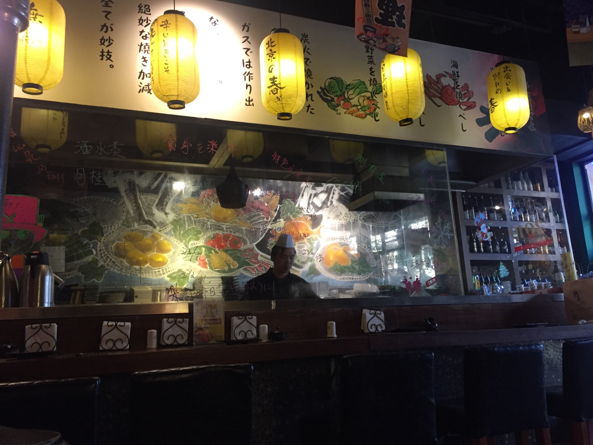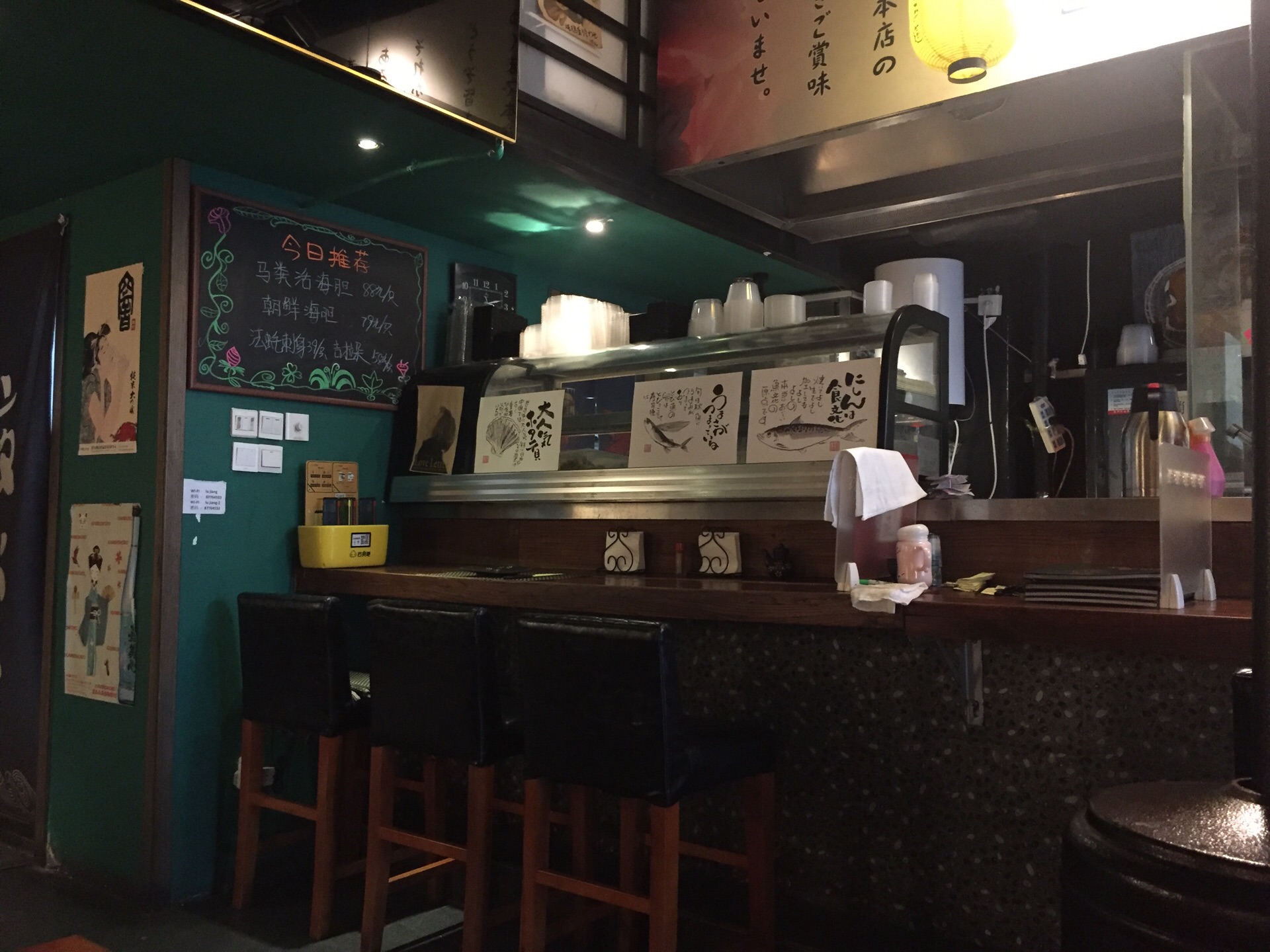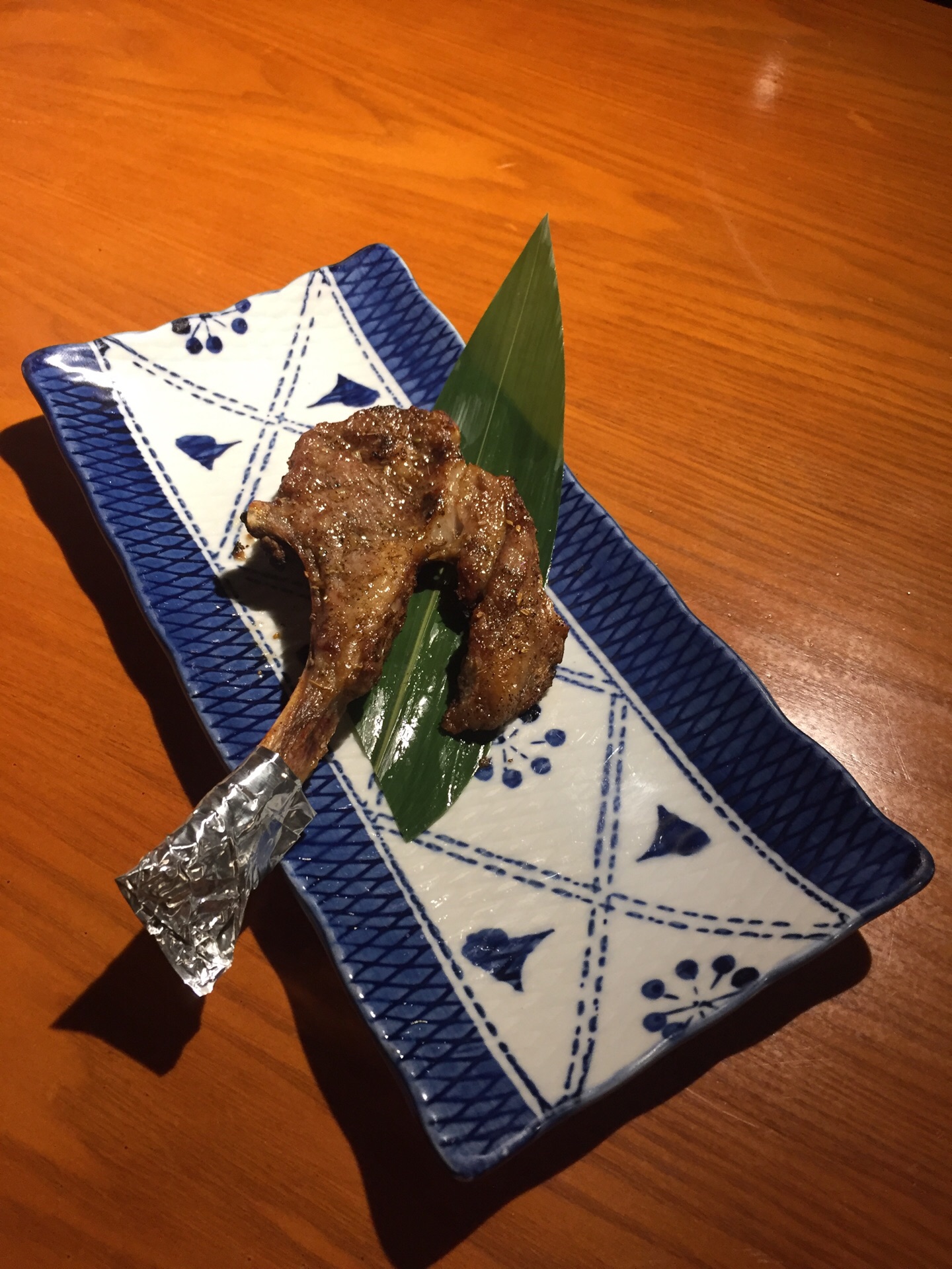 日式装修风格的一家餐厅。餐厅一边是上下两层的餐桌,另一边就是做饭的厨房。明厨亮灶,顾客隔着玻璃,可以看着厨师做各种烧烤烤串,挺有意思,吃着也放心。 豚骨拉面中规中矩,家常味的,还不错,吃了很舒服,特别是冬天,吃完暖暖的。炭烤小羊排很嫩,烤制得全熟的,不会有血丝,好吃,就是口淡的人会觉得略咸。烧鸟拼盘,每种烤串各取一串组成,可以尝各种不同味道,换口味来吃。 非高峰期下午人不多,可以安安静静地吃饭,环境很舒服,有点儿咖啡屋的感觉。