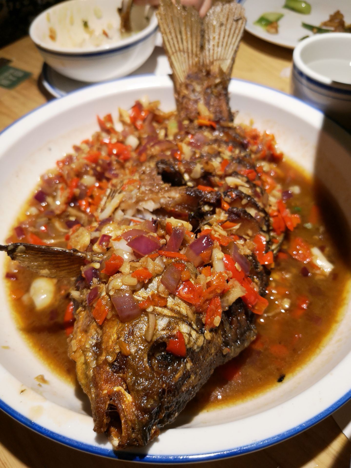 带孩子来环宇城玩,玩到下午2点,饿的我是前心贴后心!就来到了费大厨吃饭,自助式点餐,服务员告诉我们哪个还有,哪个已经卖没了,我就开始自己按屏幕,按按按,体会了当家做主的感觉!好吧,我几乎把还有的都点了,哈哈! 味道真的是顶呱呱!辣椒炒肉,香煎鲫鱼,菜花,各有各独特的香味!真真的下饭啊!开始上来个电饭锅,我和妈妈大眼瞪小眼!心想这都可以打包回去继续晚饭了!事实证明,我们……我们俩吃的基本没剩啊[流汗],服务员还问我们用不用再来一锅!OMG,瞬时汗颜!超能量发挥的吃啊!最后一人顶着个大肚子出来!晚饭没再吃……