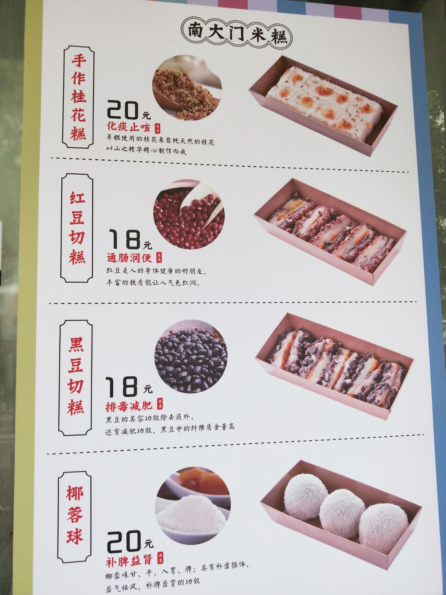 南大门米糕是最近上海比较火爆的网红店之一,在这里可以买到自己喜欢桂花糕、椰蓉球、红豆+黑豆切糕...每一样都软软糯糯的,吃在嘴里很有嚼劲,甜度也正好,对于喜欢吃糯米的我来说,绝对是无法抗拒的美味。 友情提示:这里十点开始营业,每人每次限购五盒,基本上下午两点米糕就会卖完。这样的条款和规定引来了许多排队的黄牛,我也是醉了...