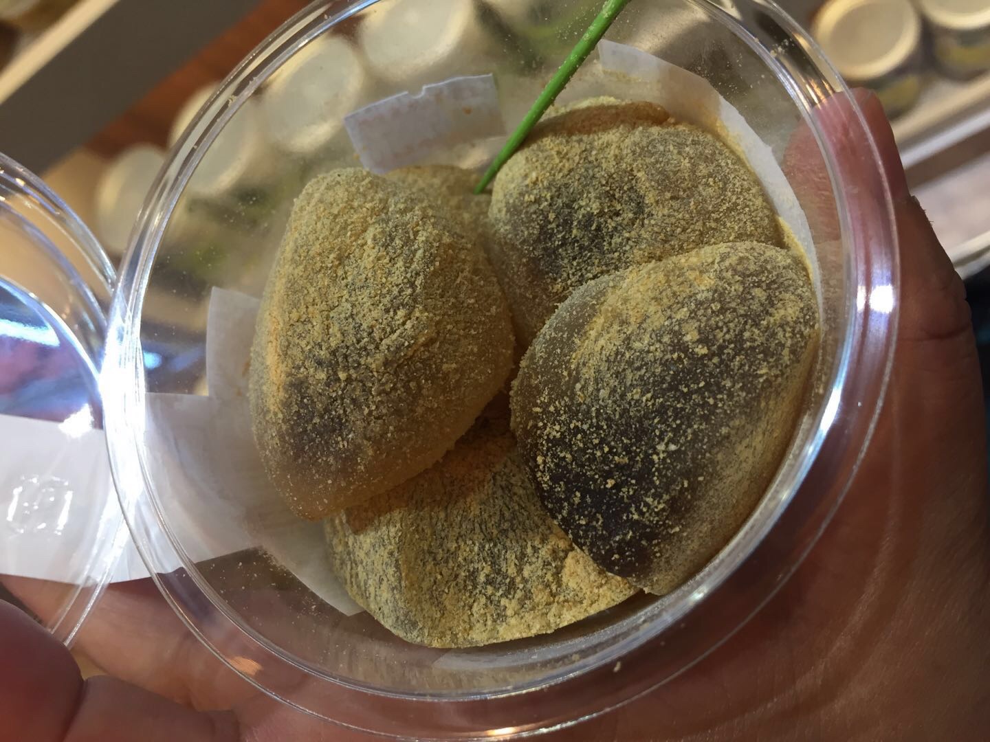 来逛街购物,看到了这家小店,非常干净,似乎日式的东西比较多,像饭团、甜点,还有一些即食的小菜,便当,就进来认真看看、选选,买了点尝尝!可选的品种还不少,样子精致,可爱,诱人,味道也很不错哈!我买的这个有点太甜了!