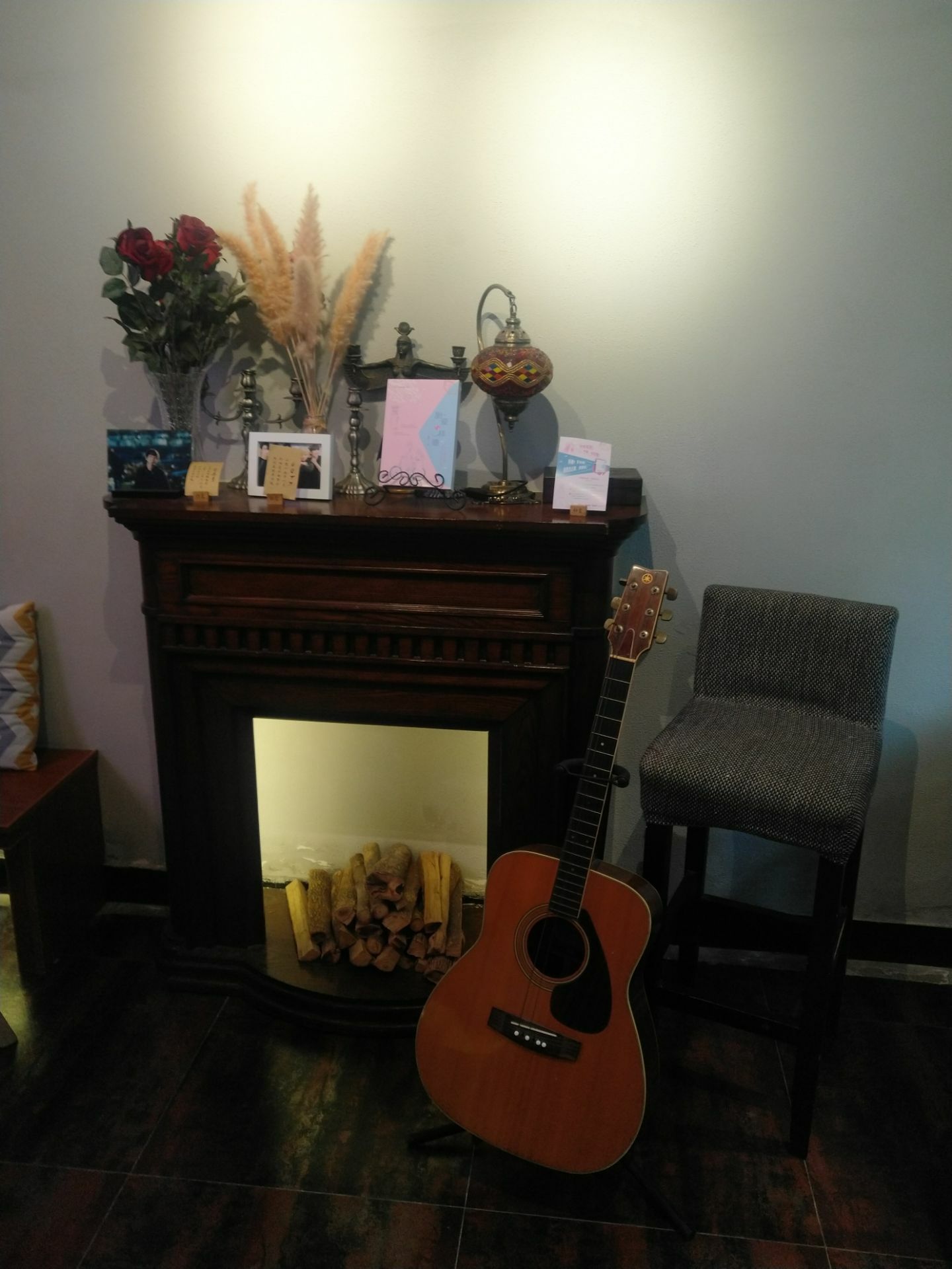 甜爱咖啡在甜爱路129号,是一家很小资很浪漫的咖啡馆。店里装修很有情调,壁炉,小提琴,小摆件。。。都有种浪漫的气息。咖啡味道也不错,也有甜点,小两口进来坐坐很合适。可惜我这次是和一个大老爷们来的。。。有些许遗憾。。。