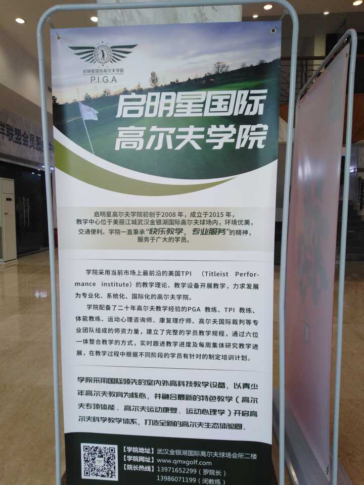 店子在金银湖国际高尔夫球会所的二楼,地铁园博园北站J出口可到,我从后湖开车过来居然不到二十分钟,位置还方便。 提前四个小时预约,接待我的是个帅气的丁教练,是武汉体院毕业的高材生哦,很耐心很细致很专业,从基础的握杆姿势到球杆的类型以及场地分布都一一讲解,实际操作中手把手还纠正我的错误姿势,在教练正确的教授下我居然打得还有点模样了,兴趣一下子提上来了,有机会会再来的,店内现在正在做青少年高尔夫冬令营的优惠活动,小朋友们也来学学这个运动哦!