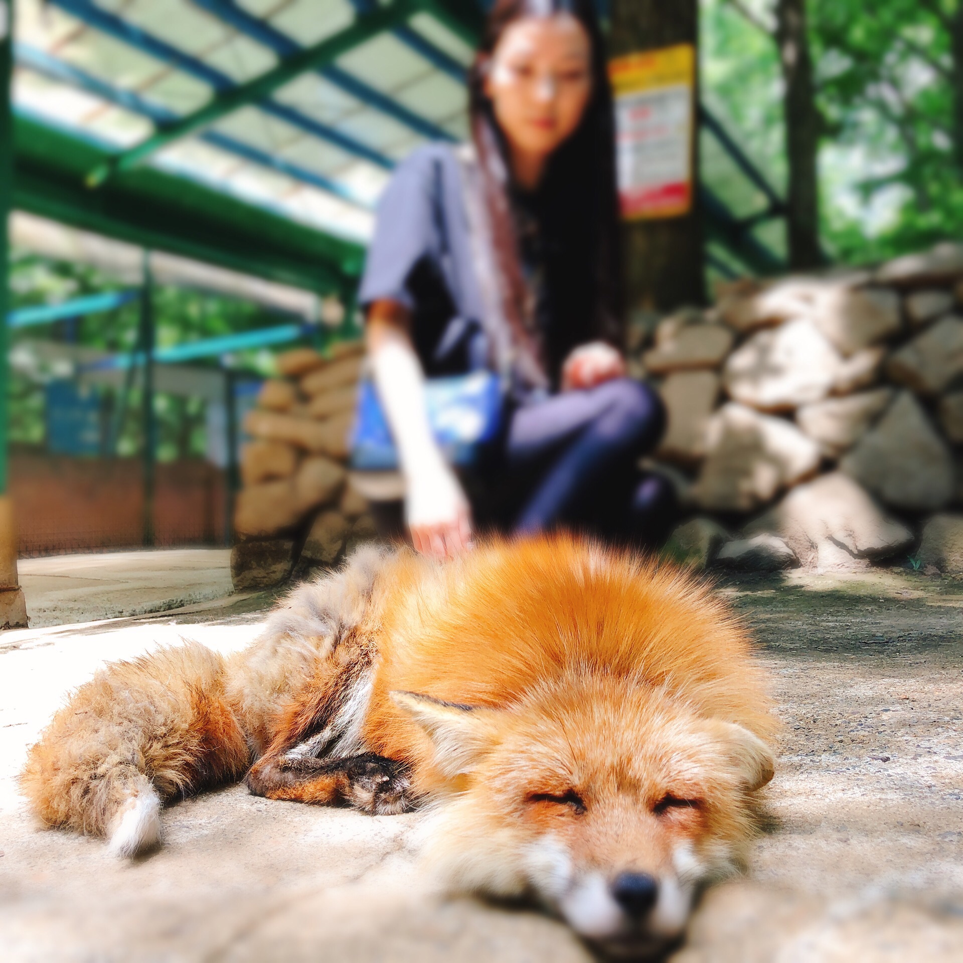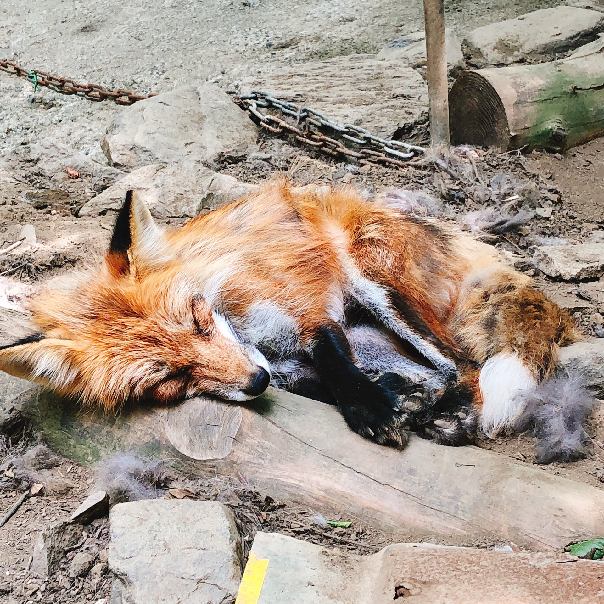 白石藏王狐狸村。狐狸村是日本宫城县白石市西北部的村庄,以狐狸著称,狐狸村内有6种狐狸,包括北极狐,银狐,青狐等,一共100只左右。在日本,狐狸是稻荷神(象征富饶,丰收和稻谷的神)的信使。交通真的很不方便,耽误一天的时间。从东京出发,坐JR新干线Tohoku Shikansen到白石藏王站Sh iroishi Zao Station 大约1小时50分钟,然后打出租车到狐狸村。回程的时候,可以让狐狸村帮忙叫车。乘坐出租车大约需要30分钟,单程4000日元左右。我去的季节赶上狐狸掉毛,没有冬天看上去毛发松软,很多狐狸都是懒懒的睡觉,但也没有耽误我对它的喜爱。这里的狐狸都是放养的,可以喂食还可以近距离的接触拍照。我错过了喂食的时间,只好等到下午拍照。可我怀里的狐狸真的很不老实,总动,我也担心它会咬我,即使换个小狐狸依然不老实,我对它们太温柔了,不舍得用力。走的时候真的很不舍得,以后有机会冬天一定要再去一次。