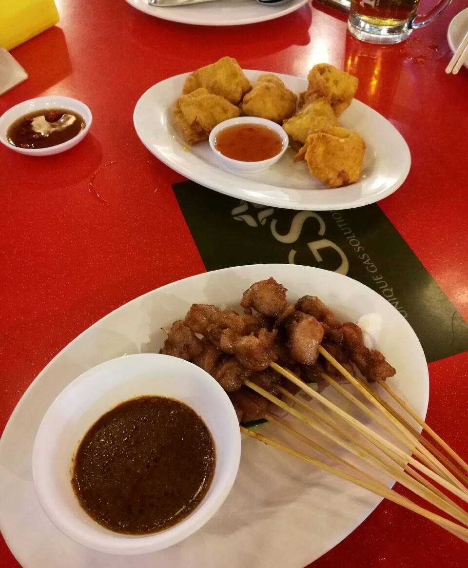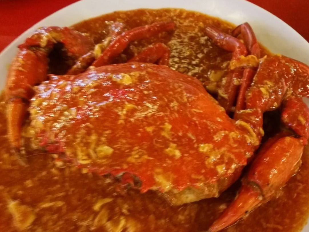 八道馆鱼虾蟹的饭店,全是美味,laksa,辣椒螃蟹,鸡蛋螃蟹,麻辣风光,麦片虾,沙爹,800克的红椒蟹将军,一只48新元、两份米饭、外加17[%]的税费。一顿饭吃掉59.6新币。折人民币271元。是历史上最昂贵且为最有记忆的晚餐。也好,将新加坡的美景和美食一同留在记忆里。味道太美味了,中国吃不到哦!