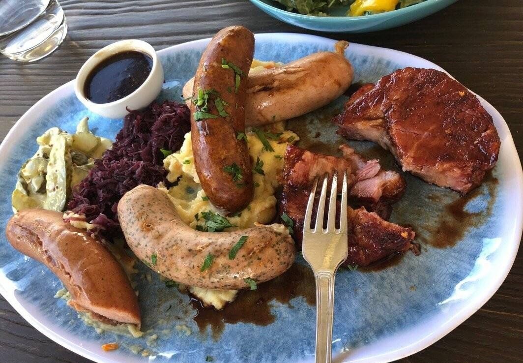 今晚吃了两顿饭,换了两家餐馆才吃到正宗德国咸猪肘