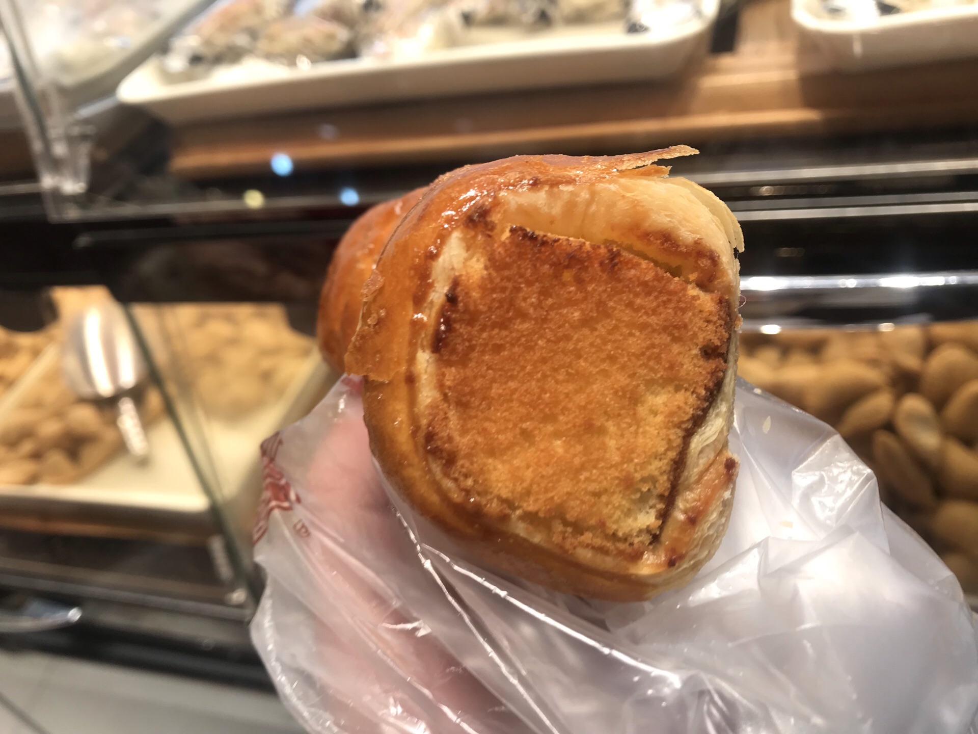 琳琅烘焙,算是海口比较老牌的蛋糕面包连锁店,开了十几年。 这家店是在汇丰商厦一楼铺面,红绿灯附近。卖的有蛋糕,面包,饼干等,种类不少,倒是挺新鲜,也能看到师傅在里面做面包。 这次买了起酥蛋糕,6元一个,外国一层酥皮,有夹了酥脆,中间是面包,倒是不贵。挺好吃的。