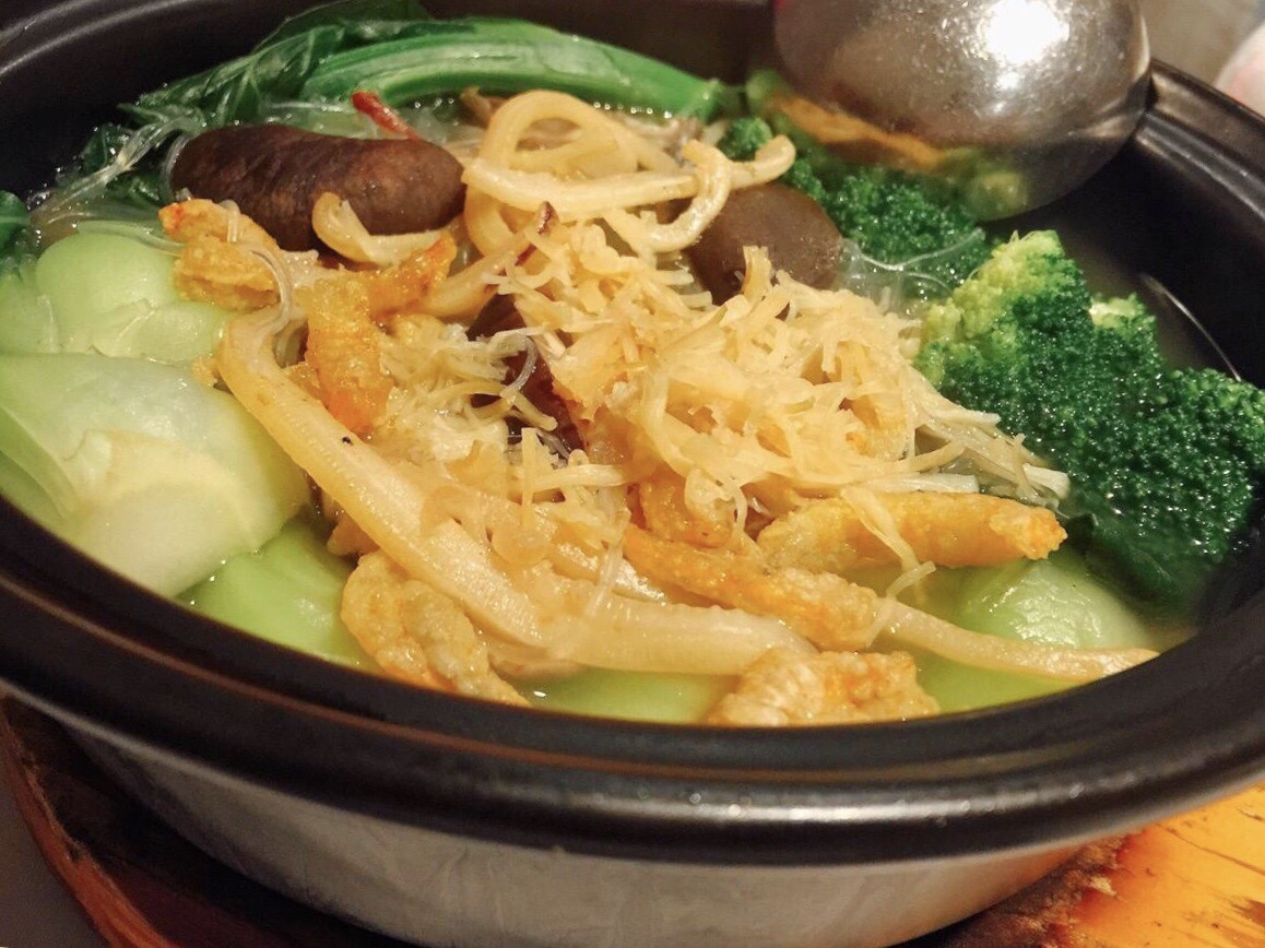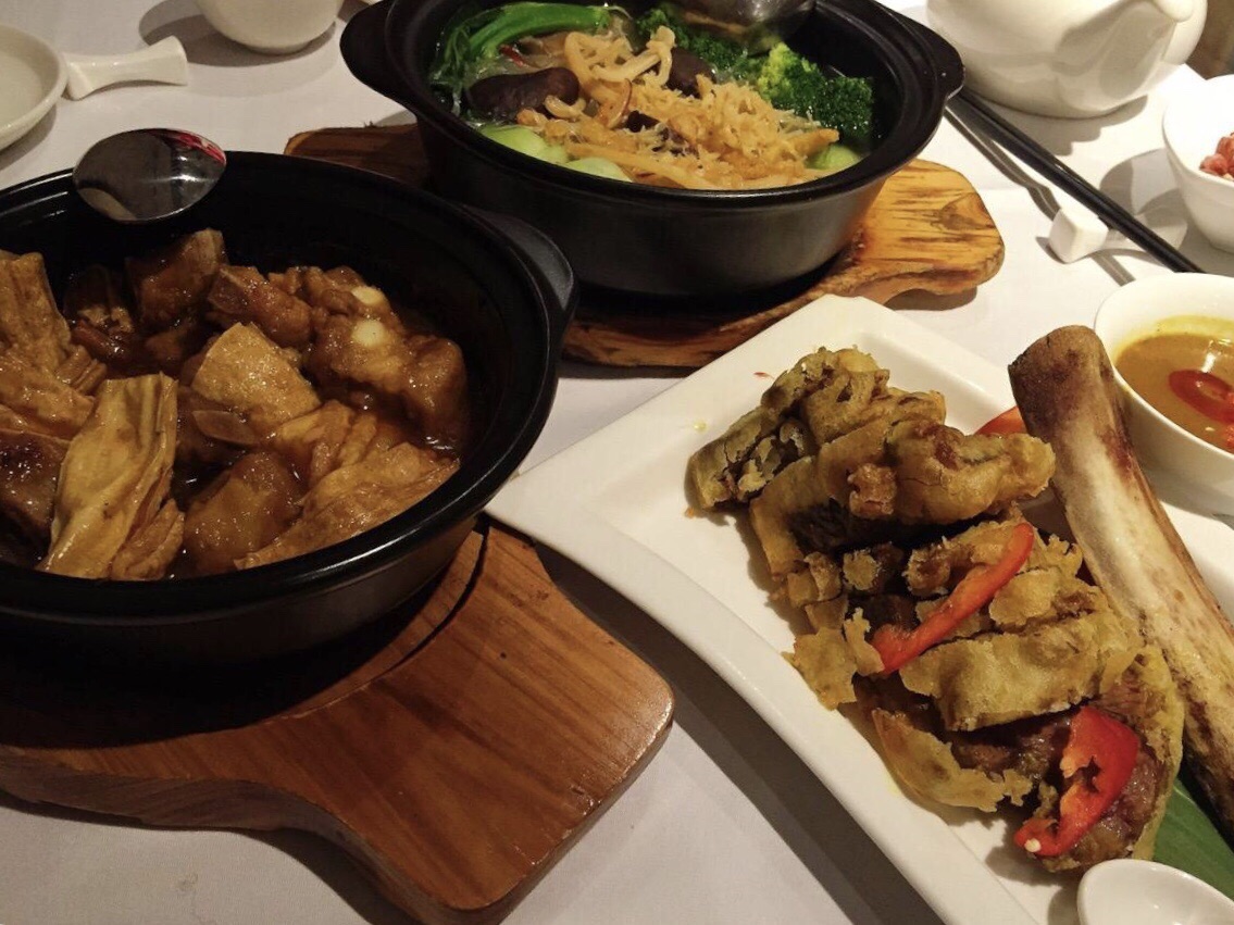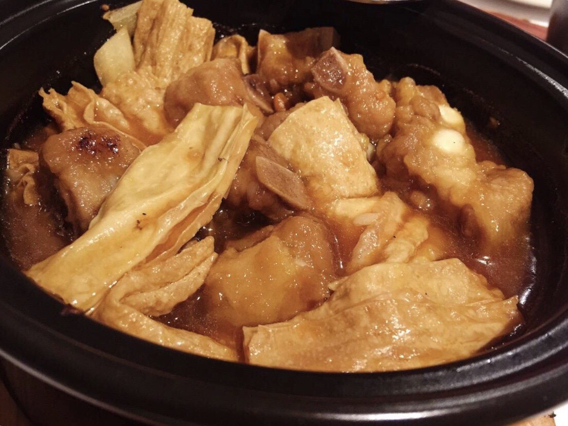 香港美心皇宫 这家真的是给了我意料之外的惊喜~ 适合家庭聚餐朋友聚会~但两三个人也能吃的大满足~因为不踩雷哇~ 要了三个大菜!每个都好吃!虽然量很大 但俩人妥妥光盘哇!那个菜煲里边菜的品种超级多 在香港吃上这么一锅菜并且清淡味道又好 真是感动到落泪哇!排骨和腐竹的那道菜当时本是随便点的 因为看不懂名字!没想到上来以后大惊喜 酱汁有点发甜 排骨很多肉很嫩~重点是我最爱的腐竹哇!完全抱锅刮!再有就是那个咖喱牛仔骨!完全和我以前吃的牛仔骨不一样!以前吃的一块儿肉上一大半是骨头 咬着牙从骨头上撕肉下来!场面描述有点儿血腥!这个是脱骨的~大块儿大块儿的牛肉蘸上微辣的咖喱酱汁 甚至超越了王品台塑牛排在我心里的位置?总之只能用好完美三个字来形容。