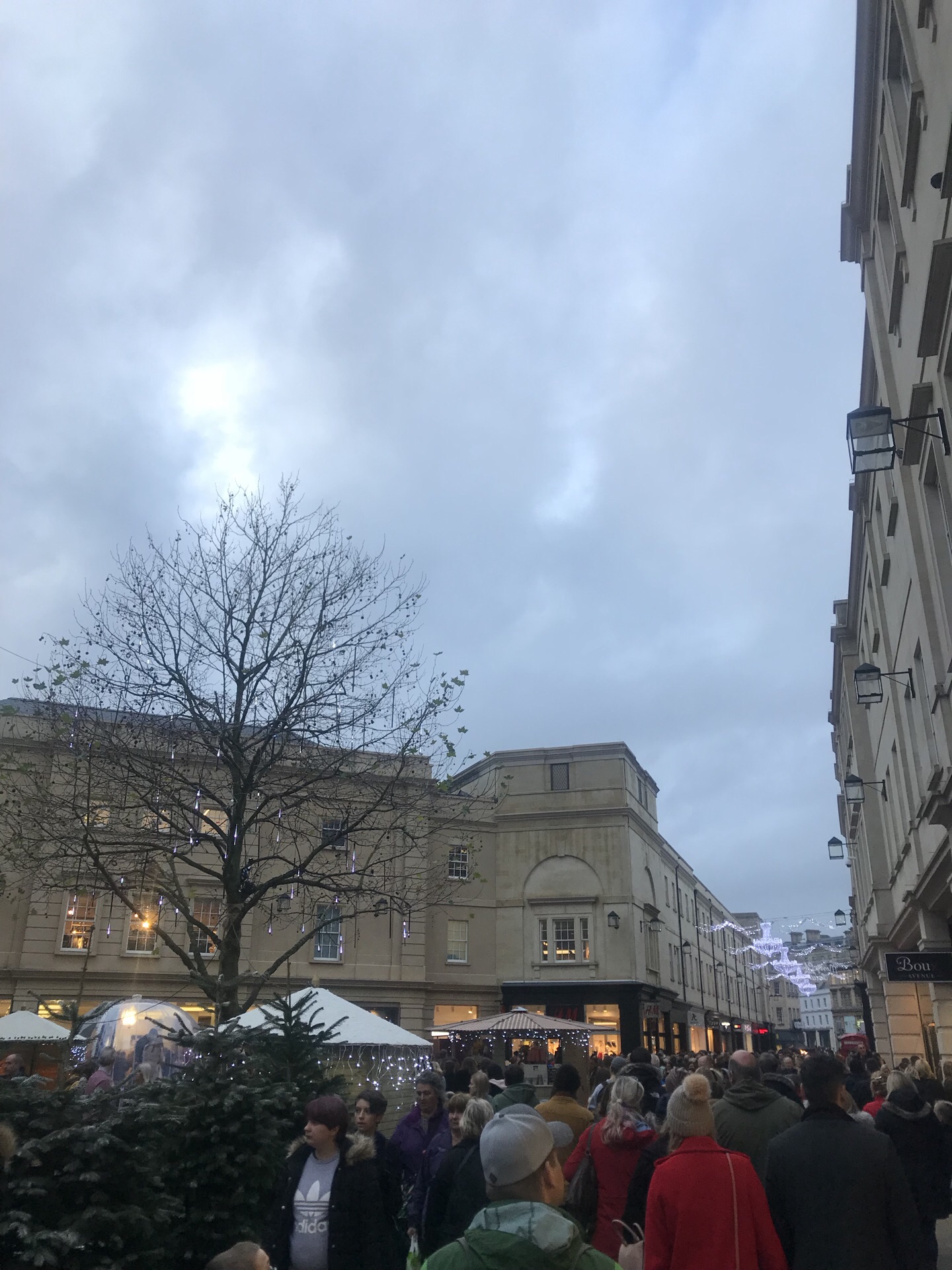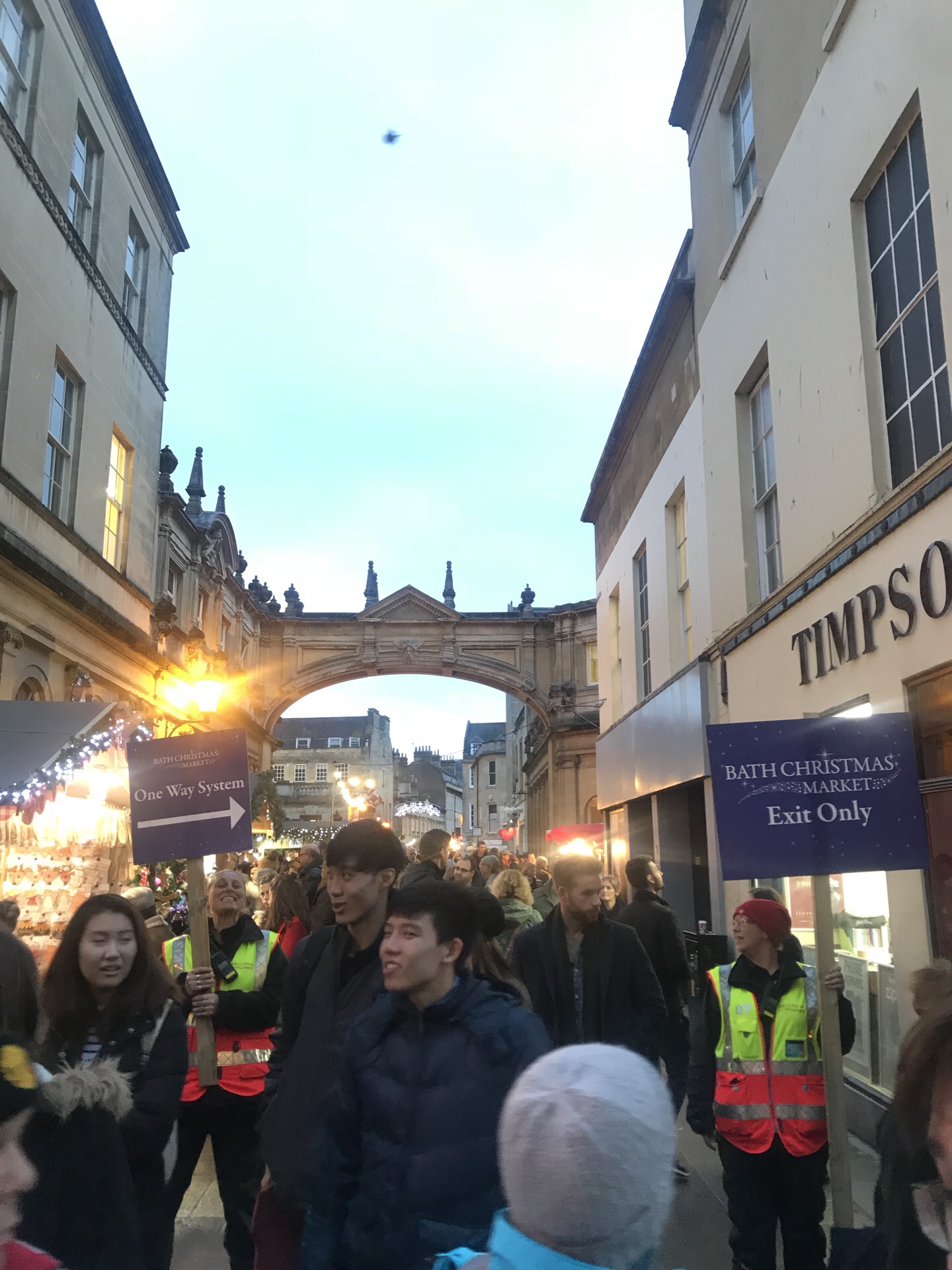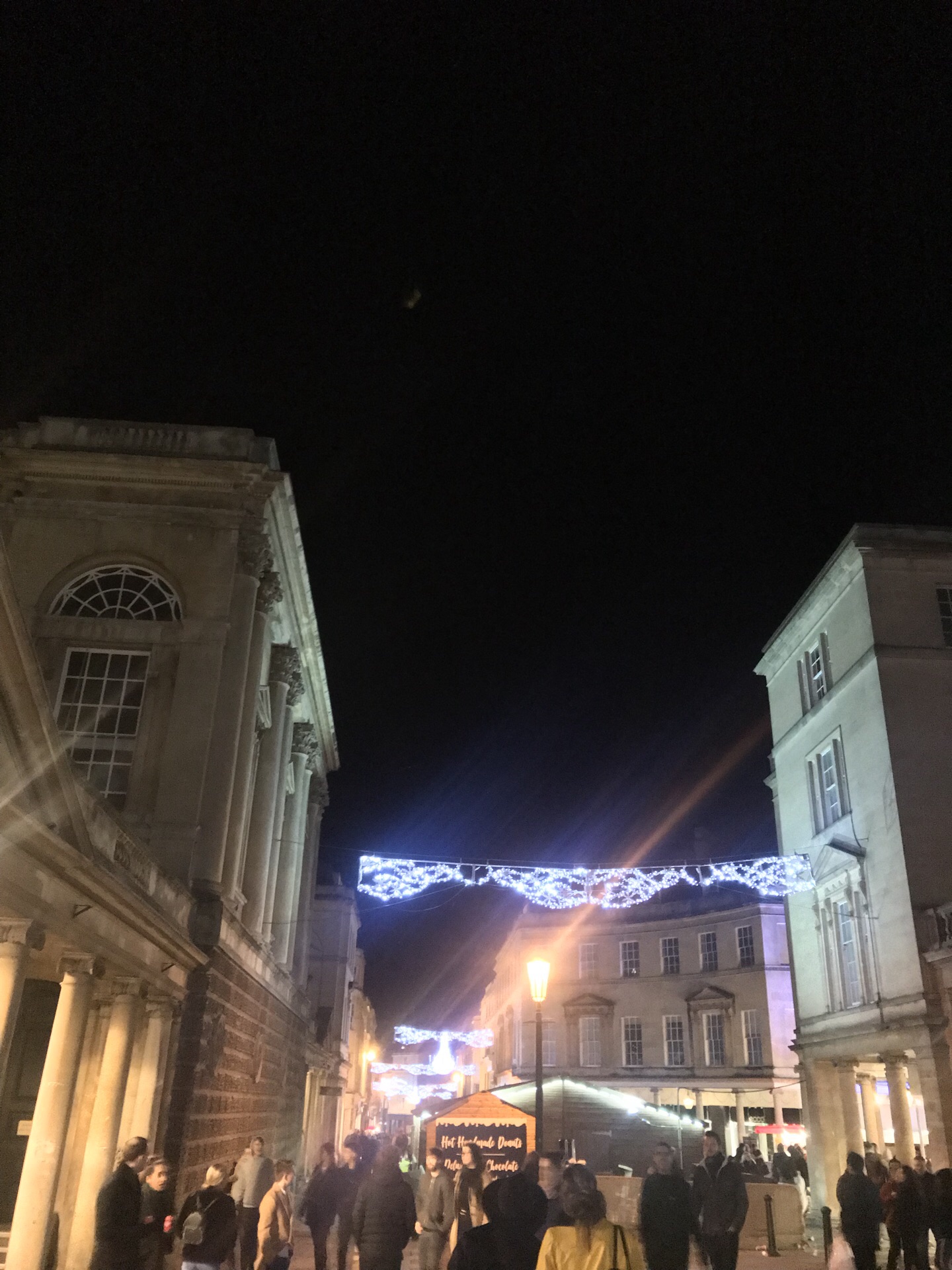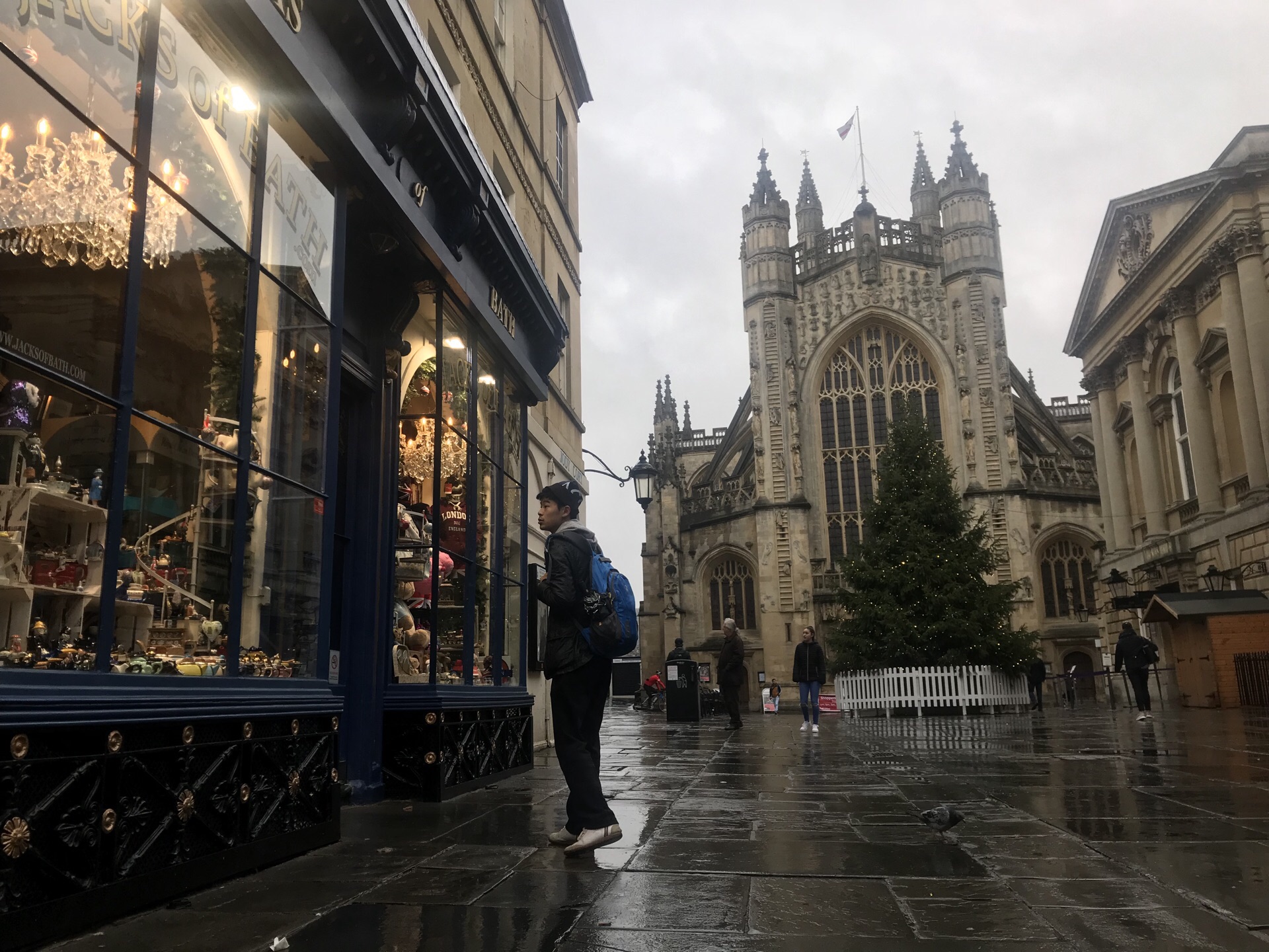 巴斯的市政厅广场应该算得上整个老城最热闹的地方了, 这里靠着主街,各式各样的快潮品牌都汇聚在附近,去年12月浓郁的圣诞节气氛使得这里甚至搭起来了规模宏大的集市区,在雄伟的教堂和旁边古罗马风格的洗澡池映衬下,古朴的建筑还是带来了不同的视觉冲击感觉