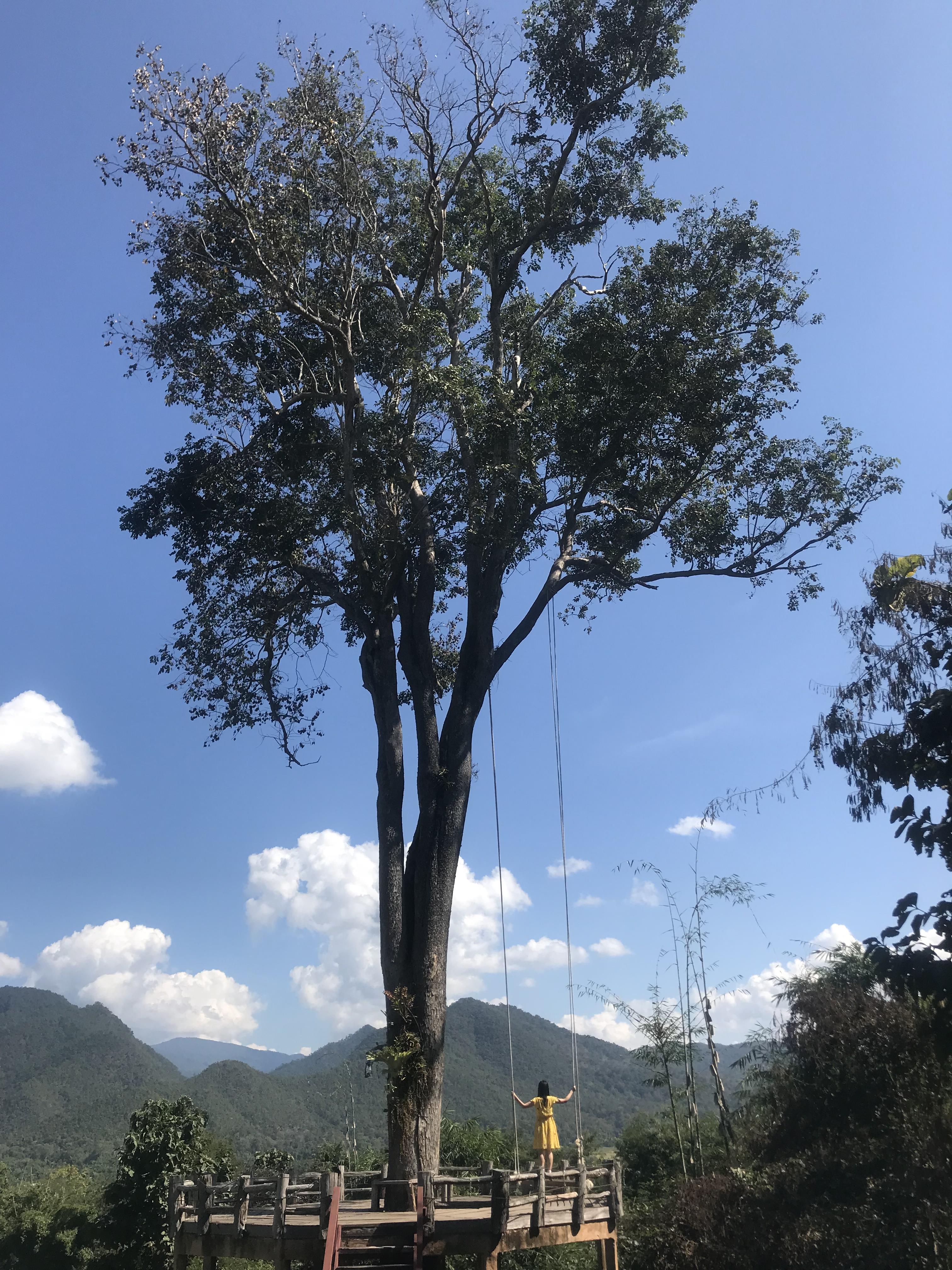 拜县著名网红景点,大树秋千,远远拍照还是很有意境的,感觉大树、秋千、天与地都融合在了一起,非常美妙。 等拍照的时候前面有一组阿姨妈妈,我勒个去,太会凹造型了,远景拍完拍近景,还要两两组合、三三组合,其实拍秋千远景才好看,完全没必要拍近景的,这种打卡景点一个人拍张照3、4分钟搞定,真是佩服她们可以拍这么久,造成后面排老长的队……