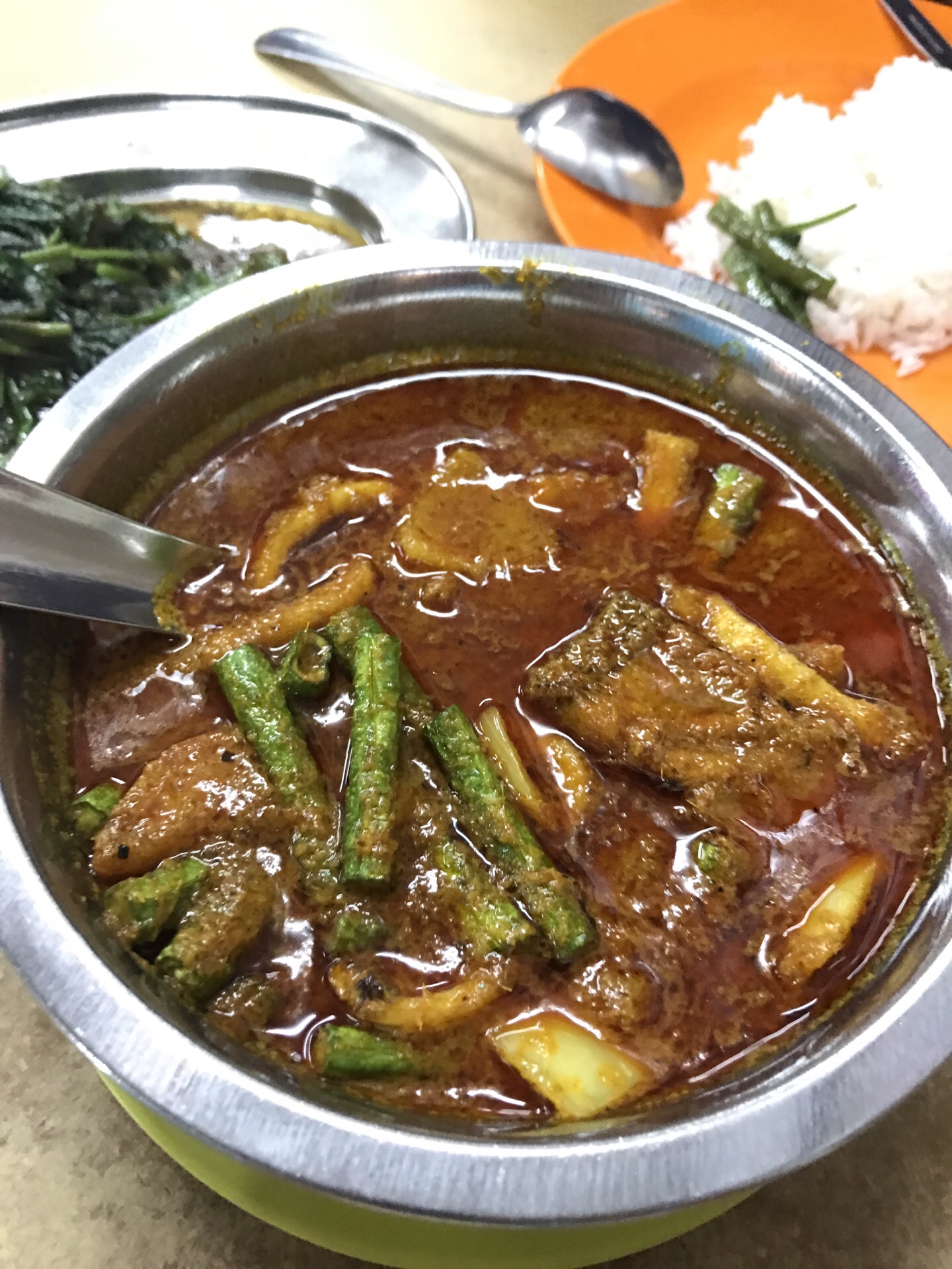 三样菜口味都不错。点了个招牌鸡翅,抄通菜和海鲜咖喱。早点来就不必等位。重要价格不贵两个人点了三个菜,这次两个人所以没点他们的招牌猪手。点了个招牌鸡翅,抄通菜和海鲜咖喱。三样菜口味都不错。重要价格不贵。早点来就不必等位。
