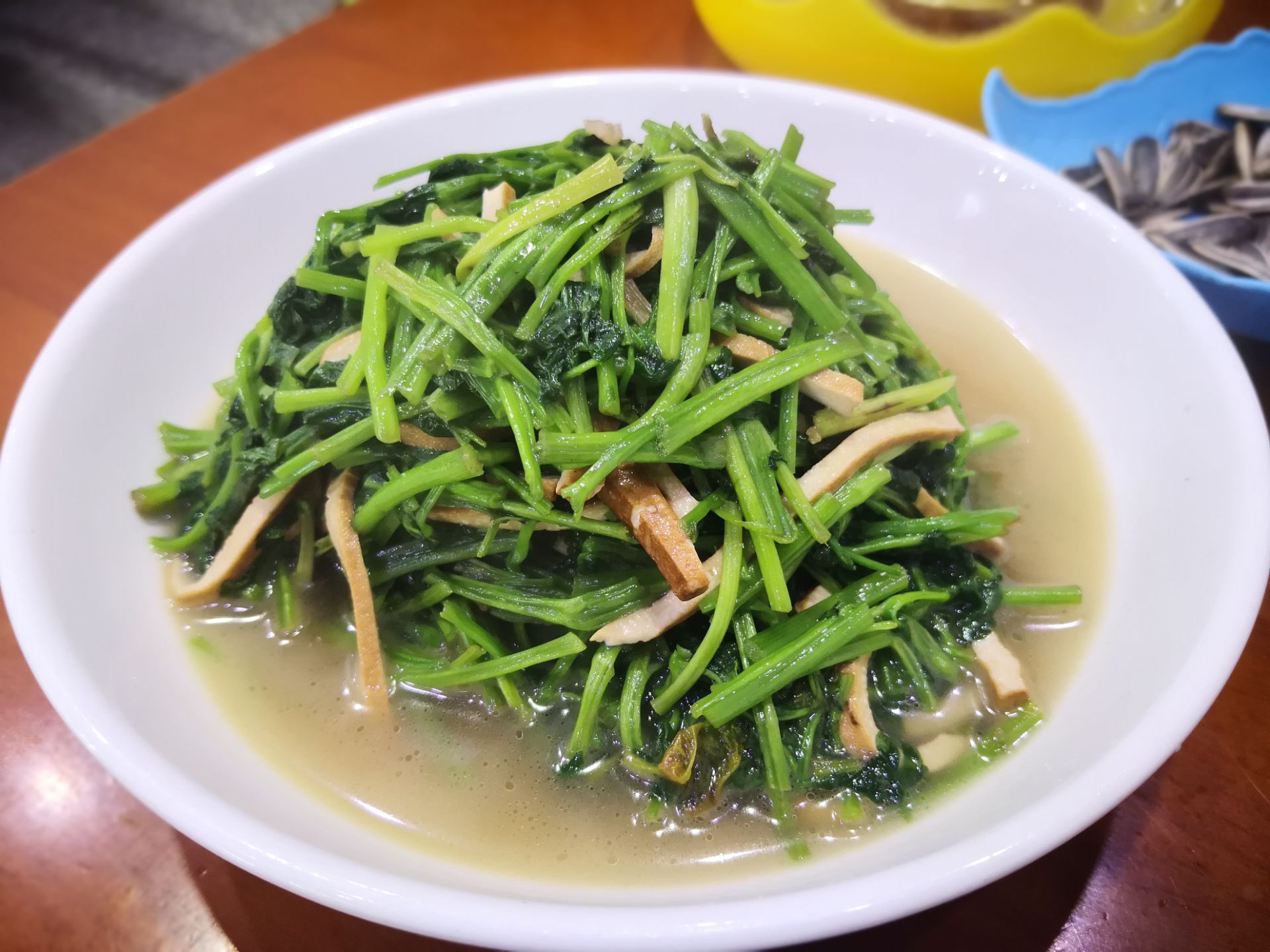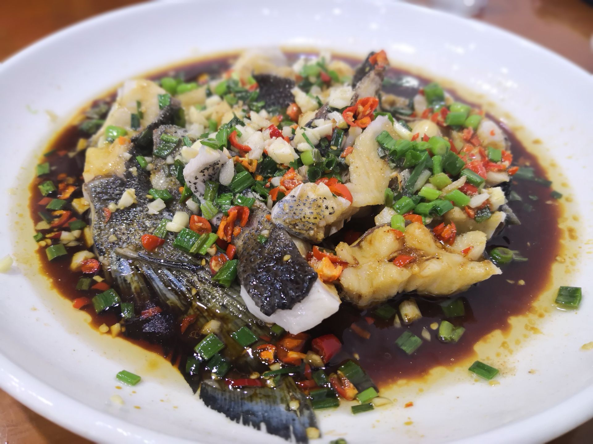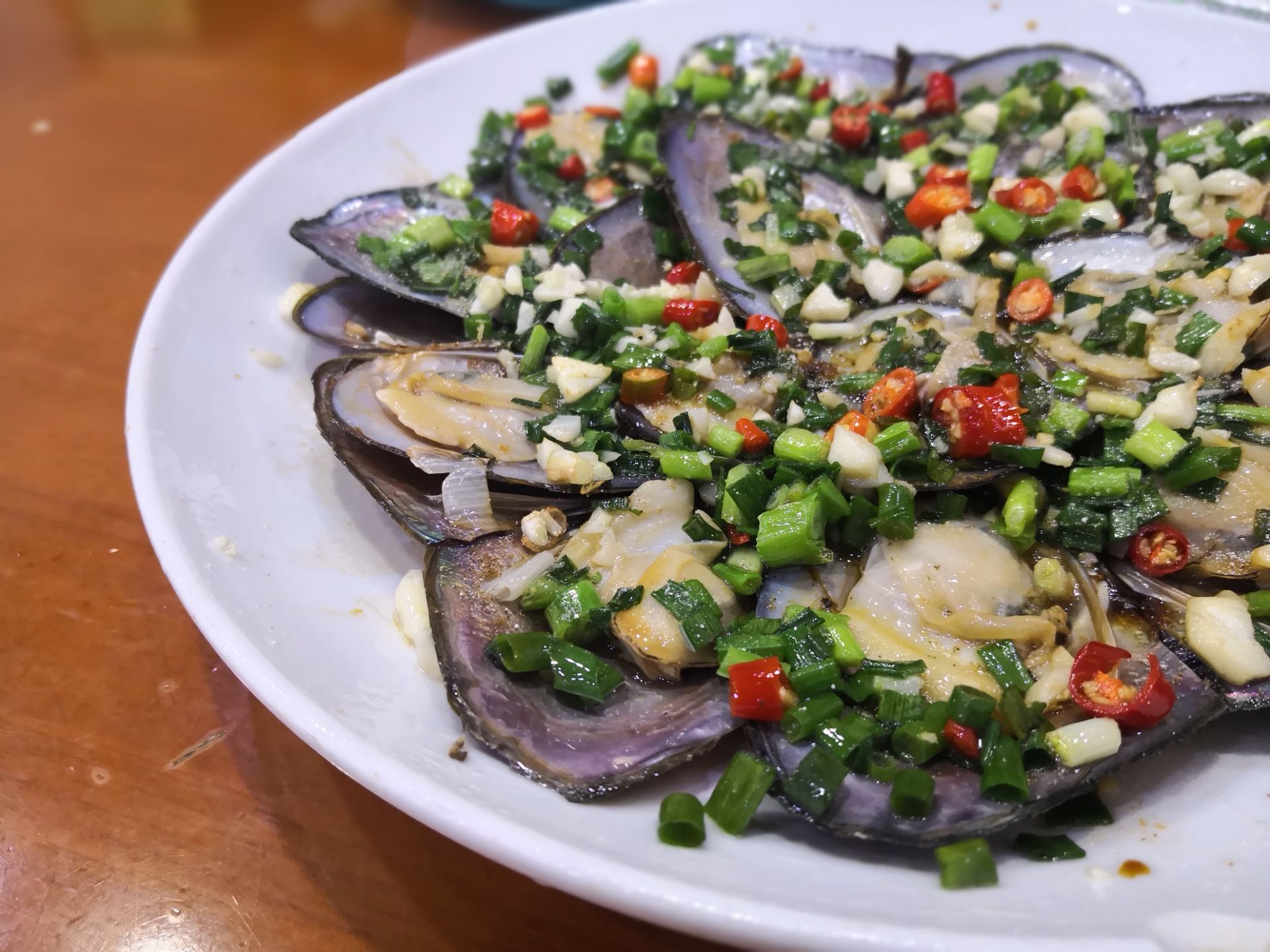 在千岛湖的第一顿,吃在这家全乐鱼馆。 店家提供的套餐太丰盛,我们两个人拼尽了全力也是吃不完的。 鱼头选择了传统的白汤,喝第一碗的时候感觉味道还有点淡,喝到第二碗的时候开始渐入佳境了,鱼鲜的味道越来越香浓。 鱼尾则是葱油的,烹调的时候加了些辣椒,更加突出了鱼肉的鲜嫩。 第一次吃清蒸蚌肉,千岛湖的蚌,个头不是那么大,撒上葱花,淋上酱油,从没吃过口感如此嫩的蚌肉。 家常素包,是千岛湖当地人家餐桌上的一道家常美食,豆腐皮里包着香菇,东腌菜等食材,包成三角的形状,吃着非常鲜美。 在全乐鱼馆,吃到了一些本地的特色美食。