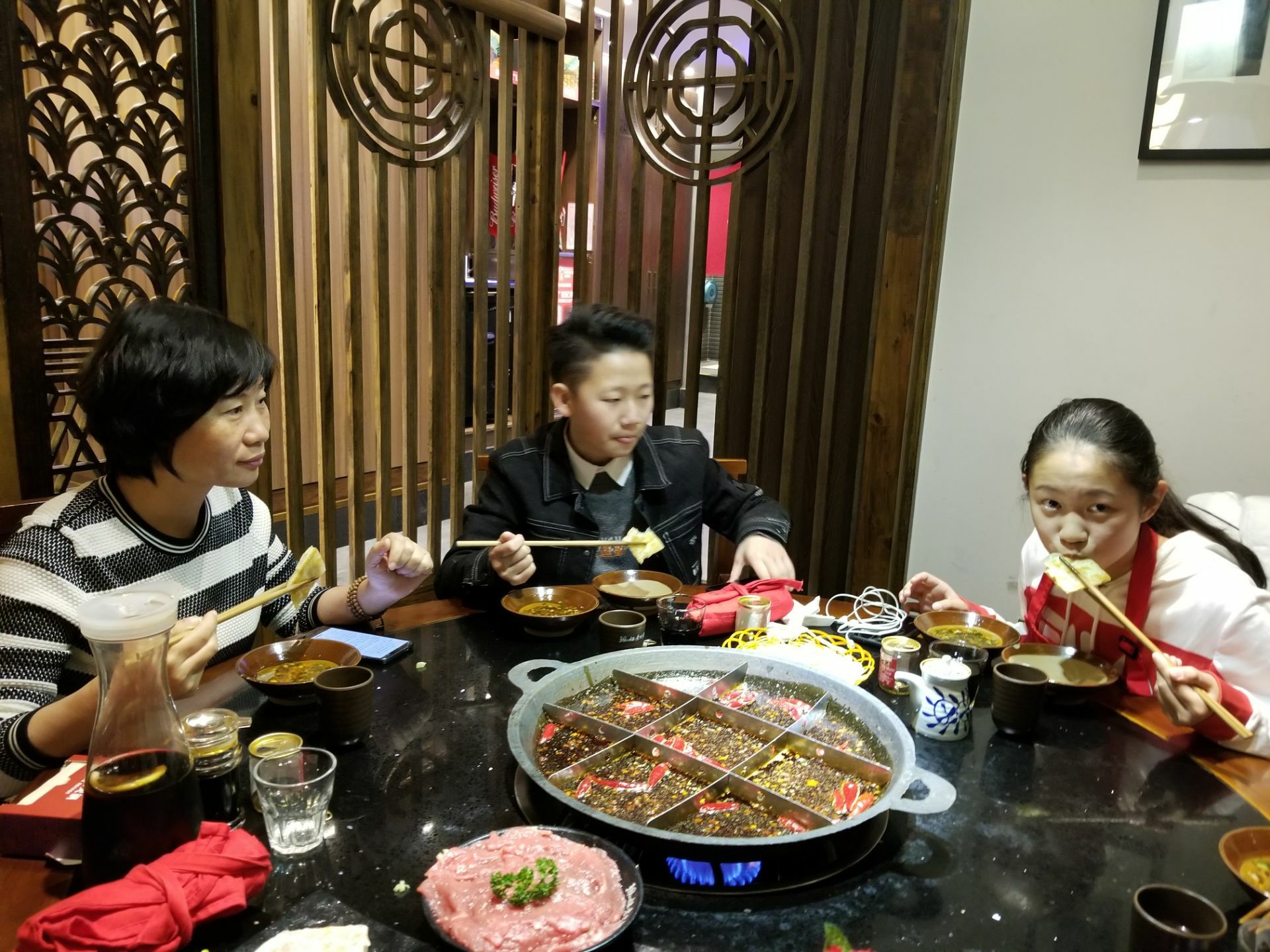 我喜欢到美食林上选餐厅。这次小女儿子琪说没试过九宮格,所以专门选了美食林臻选餐厅佩姐老火锅! 幸好早来了,只等了两个号就吃上了。出门时看见外面一堆人在排号。 味道真是不错,鸭血很嫩,毛肚,腰片,鸭肠,虾滑都挺好吃!一买单4个人才三百多,真是好吃不贵!