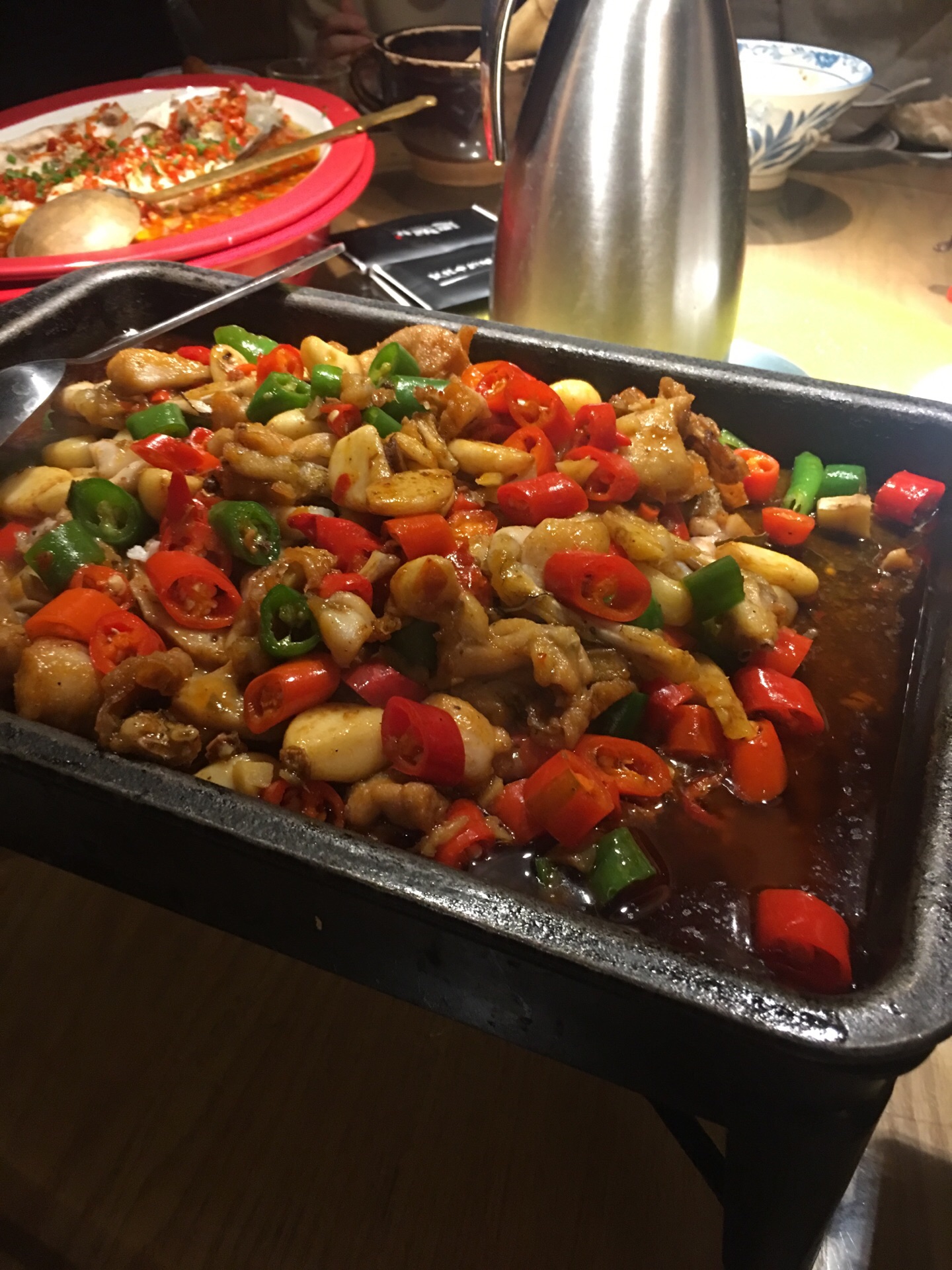 中午吃饭,几乎满座,点了好多菜,烤鱼干鲜香好吃,只是由于是鱼干做的,稍微有点硬,夹起来不太方便;牛蛙肉辣辣的好吃的,就是量对于12人的大桌不够多,总体来说,虽然不是那么正宗的湘菜,口味还不错,小哥服务还不错,很热心