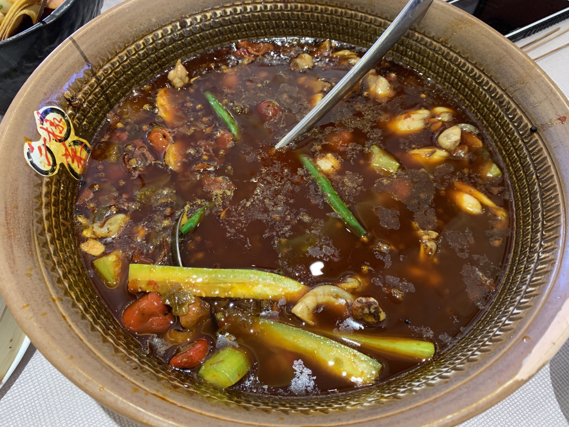 点的冷串味道很好又香又辣的,麻辣香肠感觉太肥了,全是肥油,牛蛙做的也不错,不是很咸,就是量不是...