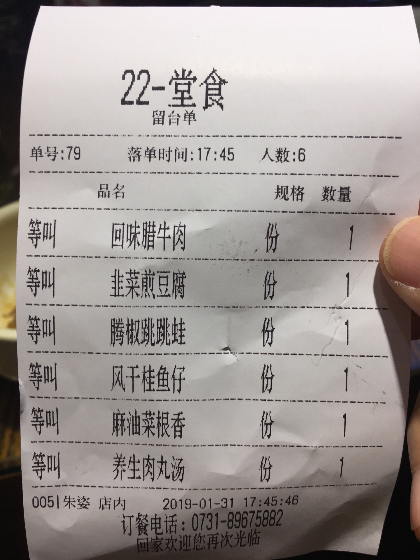 快过年了,到回家吃饭。人好多,我们提前去占了位子才能有座。这次点了养生肉丸汤,本来想点跳舞虾,但是没有了。另外点了韭菜煎豆腐,回味腊牛肉,藤椒跳跳蛙以及风干桂鱼仔,跳跳蛙肉很大,一条腿一块,虽然味道不错,不过还是喜欢肉块小点的。桂鱼很咸,其他不错。