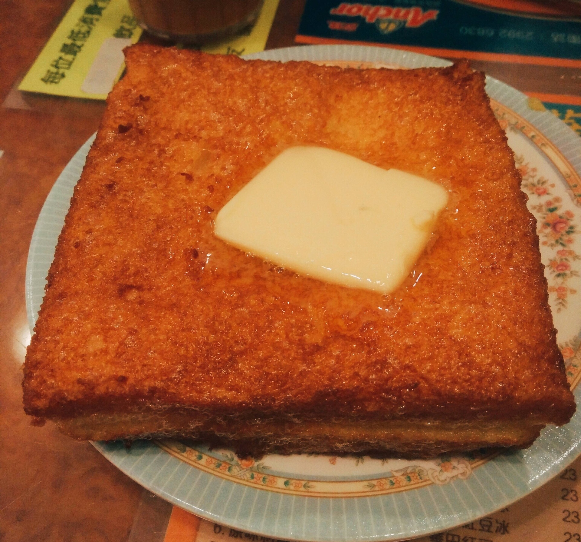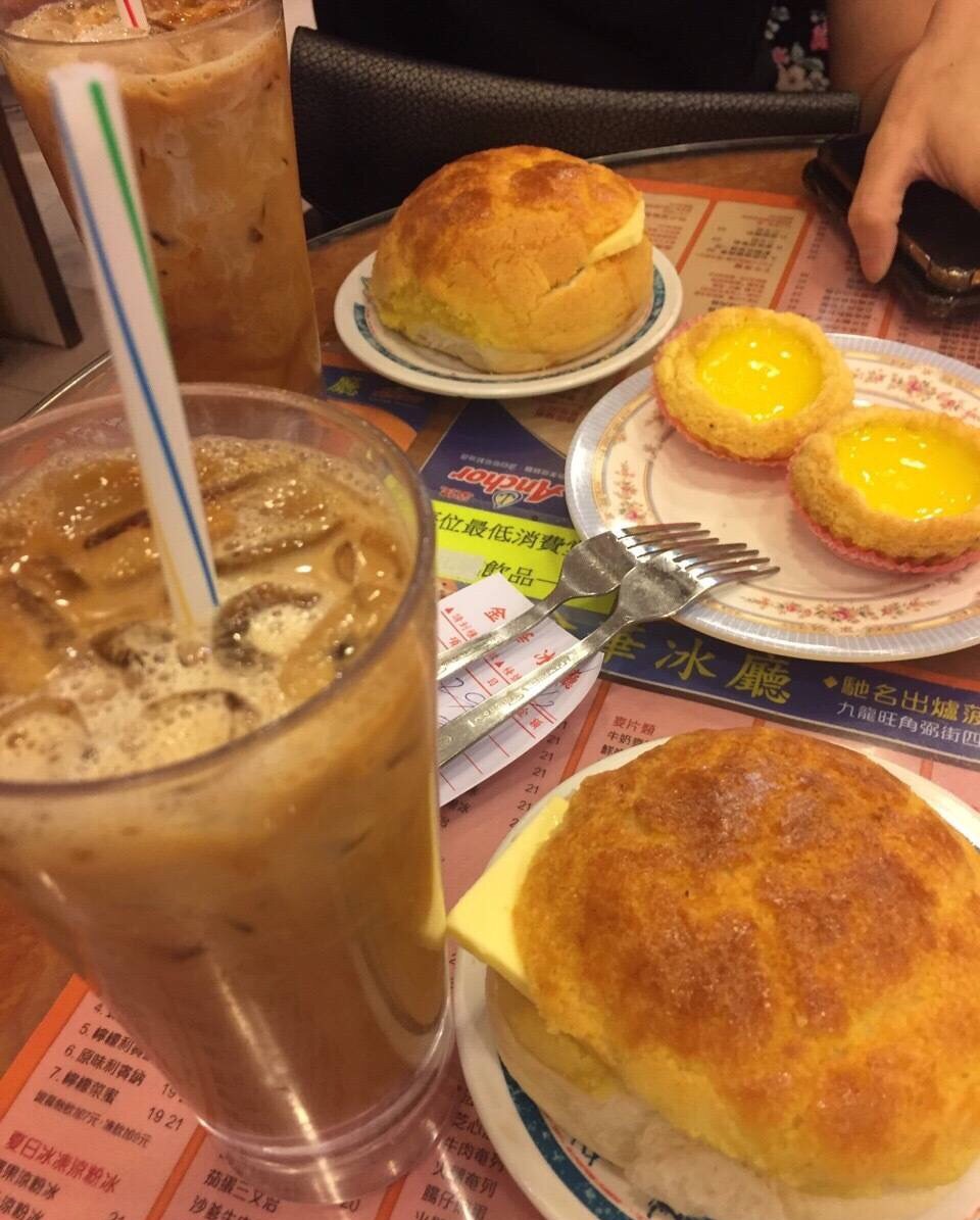 金华冰厅的菠萝油,这里招牌的冰火菠萝油,每次新鲜出炉就会被秒抢一空,酥脆的热面包与浓郁冰牛油结合实在妙不可言,金华冰厅吃了个极速下午茶,得奖菠萝油和蛋挞加奶茶都很正。值得一提的是原来我们纽约不少茶餐厅的菠萝油和奶茶做的一点都不比香港差,水准蛮高的!菠萝油是美味的,好大一个,奶茶也很棒,不过个人感觉过甜。 不知道是名声在外还是如何,服务员的态度一般,用普通话点餐特别艰难。 观察了来点餐的顾客,基本都是奶茶+菠萝油的标配,口味还不错,推荐!