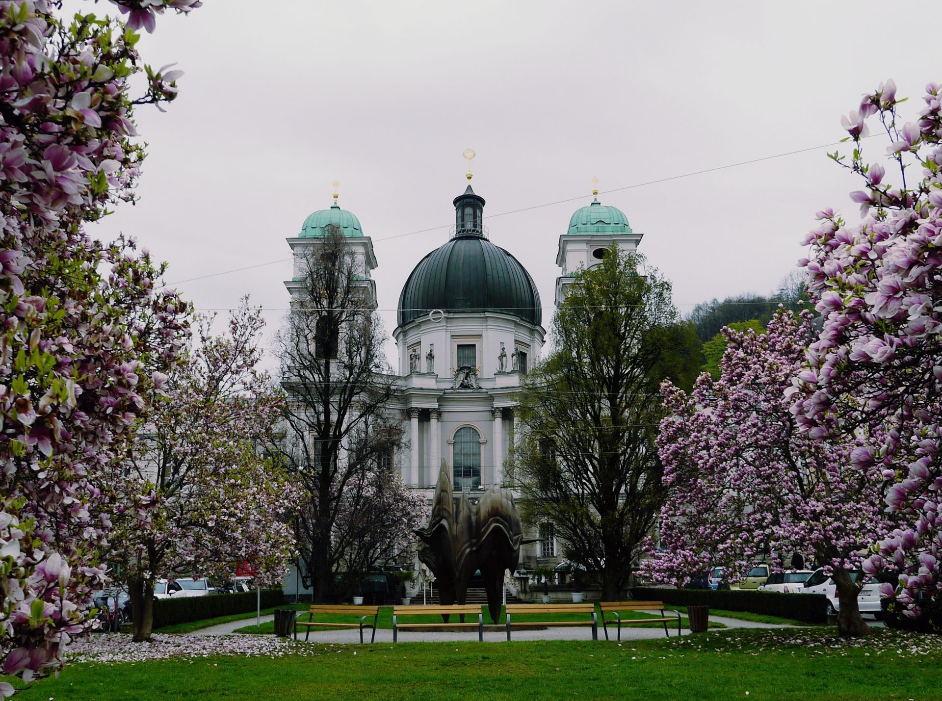 萨尔斯堡是个很美丽的城市。除了一些著名的景点之外,在街头有时不经意,路过的一些公园也有很动人的景致。我们去时,正是春天,公园里的樱花树,也是开得满满当当。还有,玉兰花、梨花,也都,开放了,春意盎然的样子。