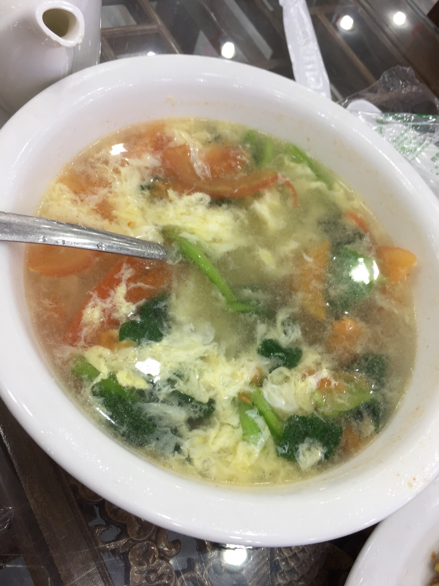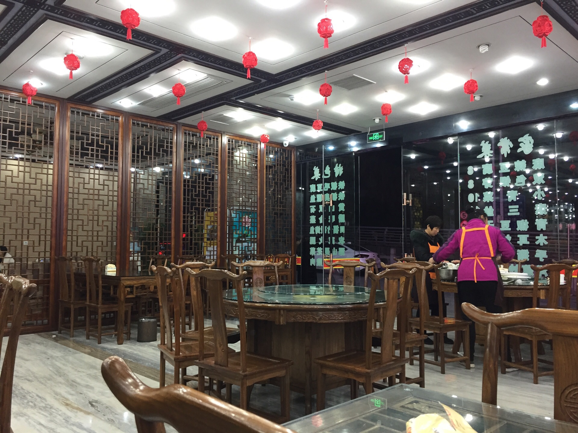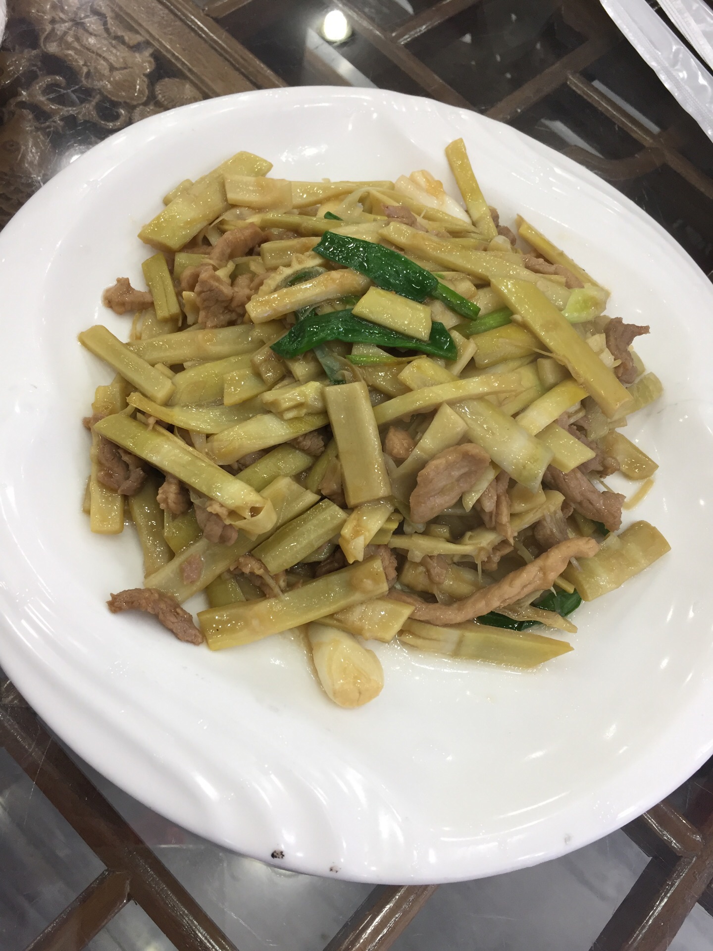 酒店一层大堂开的餐厅,面积挺大。装修风格很古典。如同镇子上的其他家餐厅一样,主营安徽当地特色菜。晚上看他家结束营业后在擦地,感觉挺干净卫生。 上菜速度超级快,刚刚点完,一会儿功夫就上了。炒菜的菜量不是很大,但味道很好。 小野笋炒肉可以做成免辣的,笋嫩肉丝香,配米饭是道硬菜,很下饭。三鲜豆腐是用蘑菇、笋和豆腐一起炒的,都是鲜食材,炒出来自然很鲜,而且价格不贵,经济实惠。米饭虽然菜单上是论碗卖,但实际是上了一大盆。西红柿蛋汤味道一般,里面放了油菜心。 冬天天冷,菜和饭炒出端上来,要很快吃,不然容易凉了。
