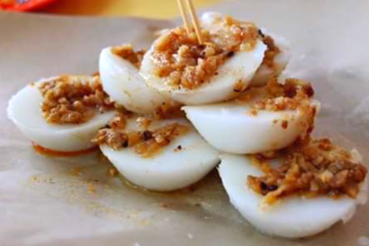 水粿是磨了米然后蒸熟的米糕,没有味道,必须配上炒香的萝卜干吃。喜欢辣的可以加辣椒酱