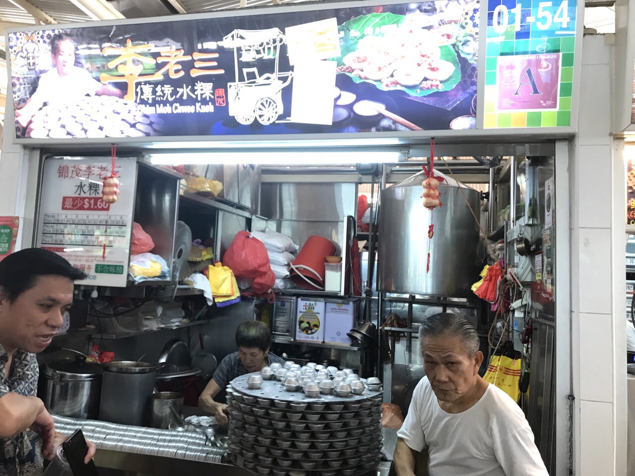 一早就来买我奶奶很喜欢吃的传统潮州水粿。她吃这一家店的水粿大约有二十年了。我们有路过这一区都会买一些孝敬奶奶。 李老板夫妇都60多岁了,每天早上6点一刻就开档,一直卖到傍晚6点,营业时间好长。所有的水粿和萝卜干酱料都是他们自己制作的。 水粿是磨了米然后蒸熟的米糕,没有味道,必须配上炒香的萝卜干吃。喜欢辣的可以加辣椒酱。