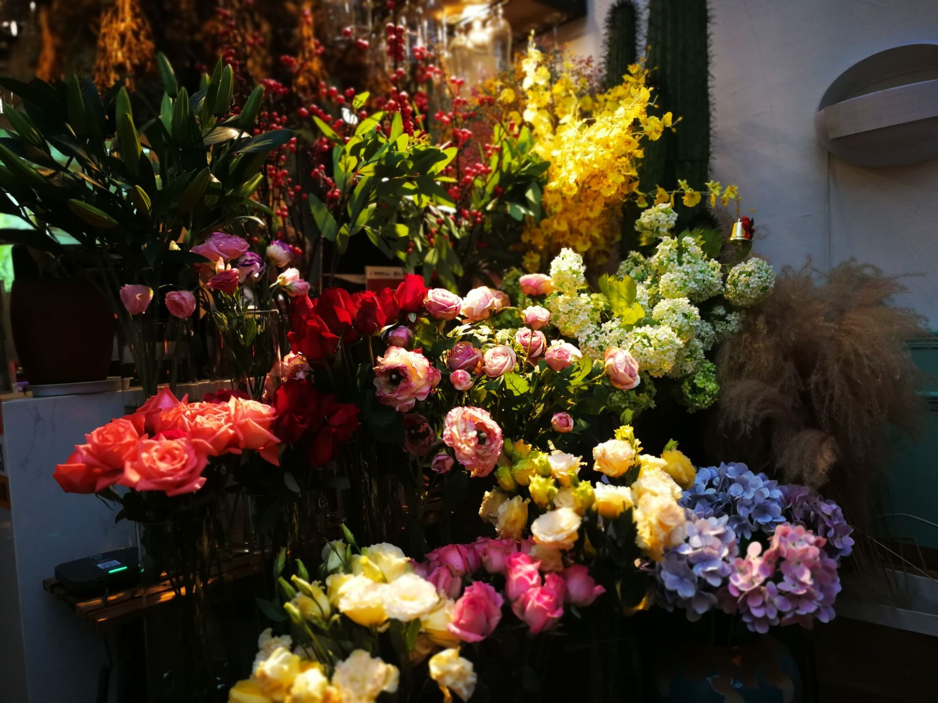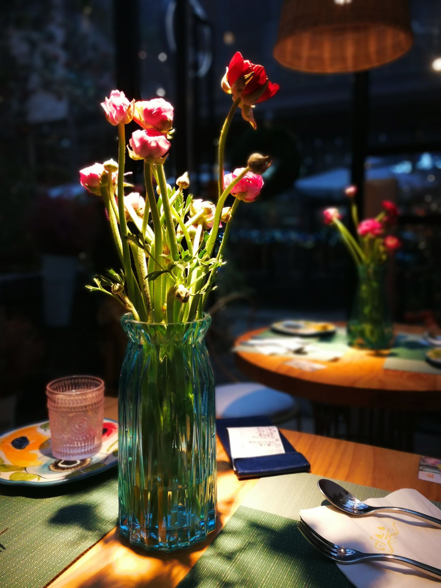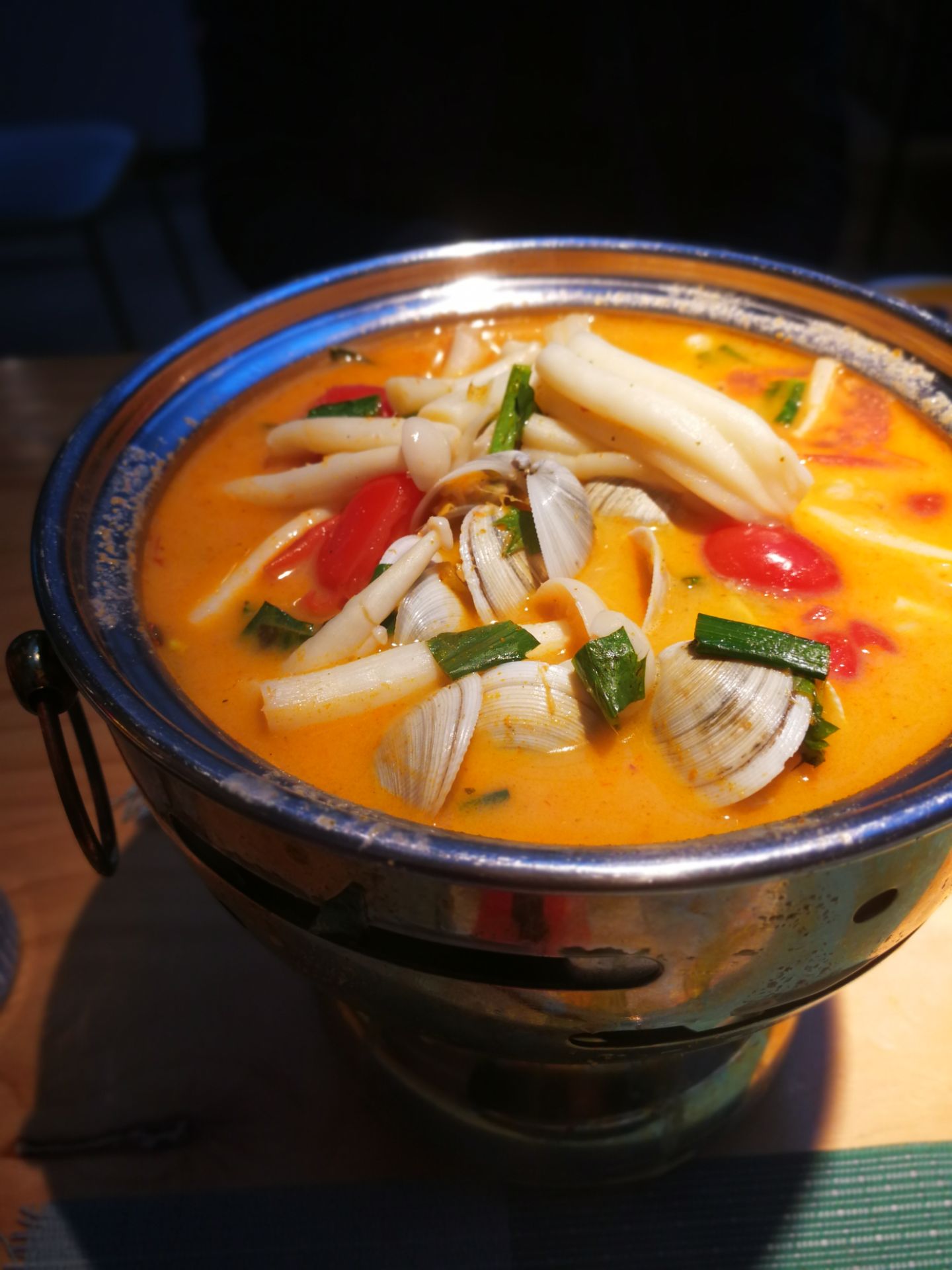 花泰,也是心心念念一直想去的一家店了。光听名字,就莫名的喜欢。 [环境] 皇后公园的深处,有一间玻璃房,这便是花泰了。门口放了很多的绿植,还有霓虹灯星星点点,春天的气息迎面扑来。 餐厅不大,餐位不多。但每张桌子上都放了新鲜的芹叶牡丹,娇艳欲滴。墙角上还挂下一支大大的花枝,虽是假花,但同样美好。 吧台有个架子,一层层放了很多各式各样的鲜切花,让我一度以为他家还卖鲜花。错了,这些都是用来装点的材料而已。 【菜品】 |冬阴功汤^ 每次胃口不开的时候,总会相当冬阴功汤。诱人的色泽,迷人的香气,酸辣的口味……光是想想就会咽口水。他家的冬阴功汤,用料也是实打实的,大虾很大只,很新鲜。还有好多白贝、菌菇。这个汤最是销魂啦,那点恰到好处的辣味,真的是激活味蕾的杠把子。而我家爪子,迷恋到把香茅草都吃了。 |香蕉烤馕^ 额外赠送了馕,看点评的推荐菜,选了香蕉味的。薄薄的馕饼,嵌着一片片香蕉,经过烤制,香味被激发了出来。香甜可口,而又不失韧性,真是不能错过的零嘴。 |芒果糯米饭^ 玫瑰花瓣的装点下,这道菜真是鲜艳无比。大半个芒果,一个紫色的心形饭团,配一叠椰浆。芒果很甜,米饭香糯,椰浆丝滑,经典的泰料! |西兰花炒大虾^ 这道菜相对比较粗放点,但用料依旧走心。西蓝花的熟度刚刚好,大虾也很入味。就是汤水略多,降低了颜值。 |马来文火虾肉咖喱^ 又是一道鲜花绽放的菜,一道有虾肉的菜。除了虾肉,还有鱿鱼等等。咖喱非常下饭,配馕饼吃也很赞哦。 |橙汁^ 饮料选了橙汁,鲜榨的哦,酸酸甜甜真滋味。 [服务] 服务也是非常的贴心了。提前打了电话,会告知大概什么时候会需要等位。吃芒果糯米饭的时候,有主动来问我要不要去皮。总体感觉真的非常棒!