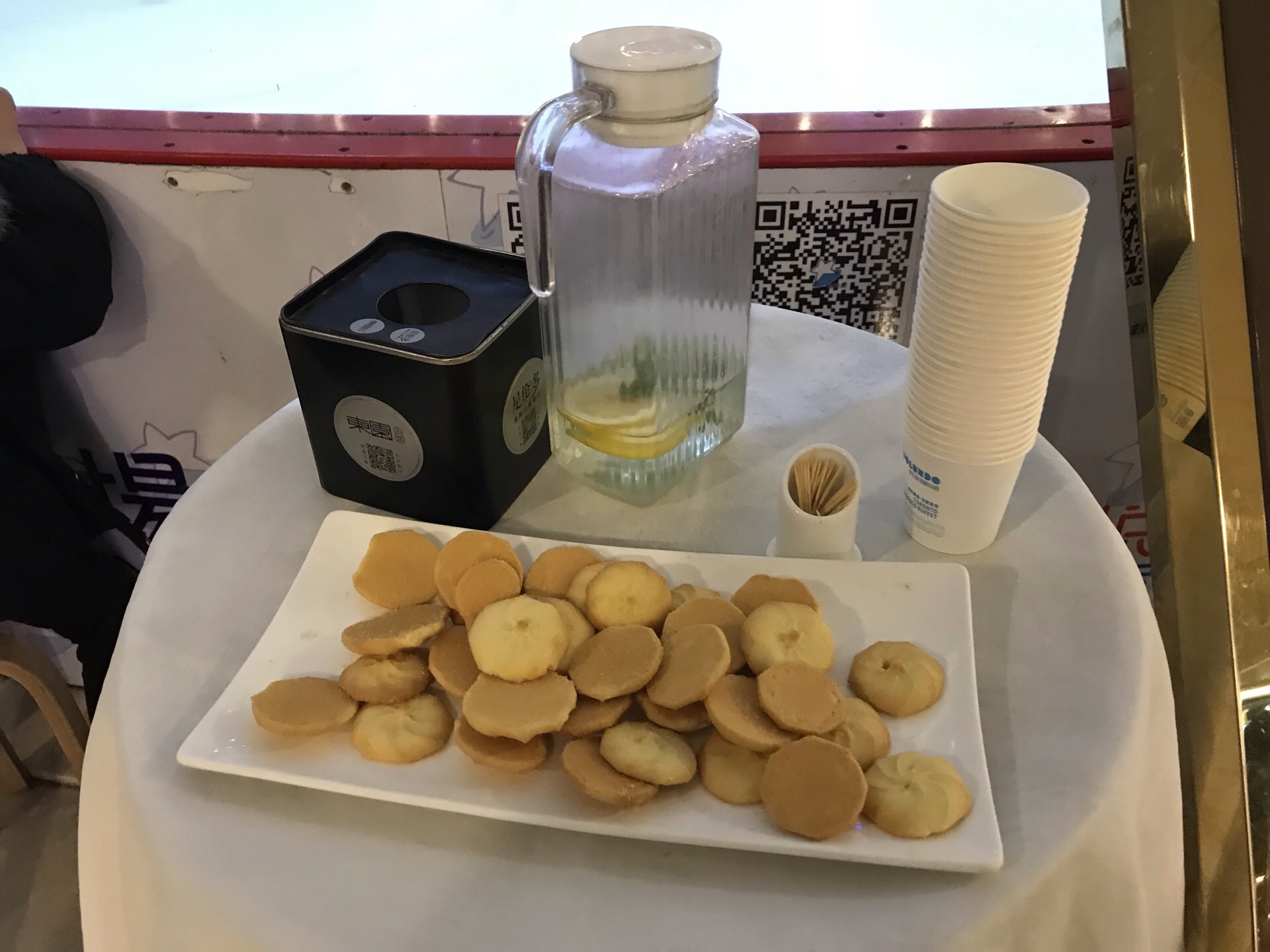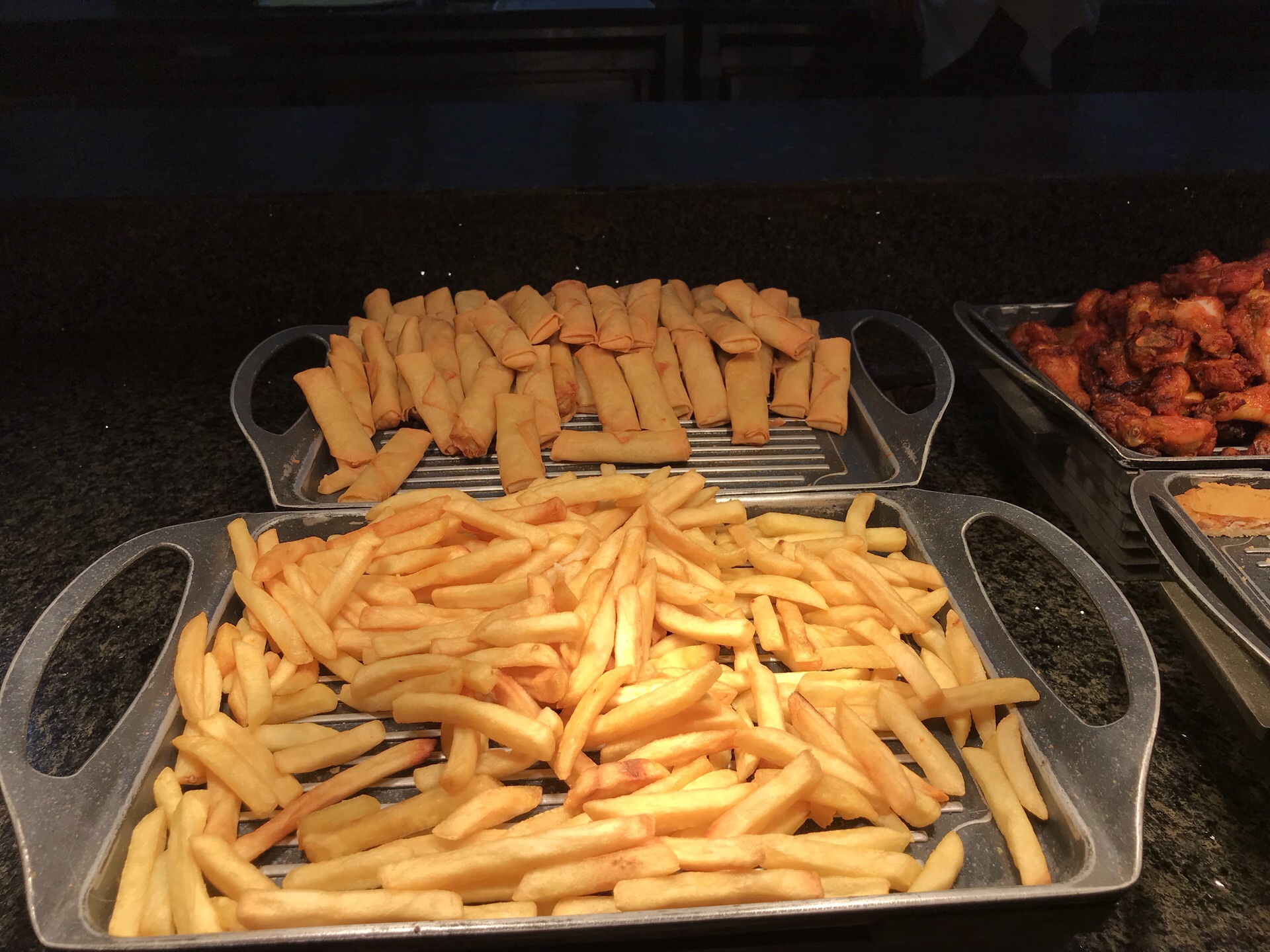 朋友约起年前聚一下,我现在对自助餐已经不感兴趣了,服务员态度很好,收盘比较及时。过年期间有些食材可能采购不到,所以品种比平时少了一些,小鲍鱼没有了,八爪鱼也没有了。今天的煎鲳鱼格外咸,烤鸭卷不好吃,有股鸭骚味。其余都还行,价格优恵,可以尝尝。