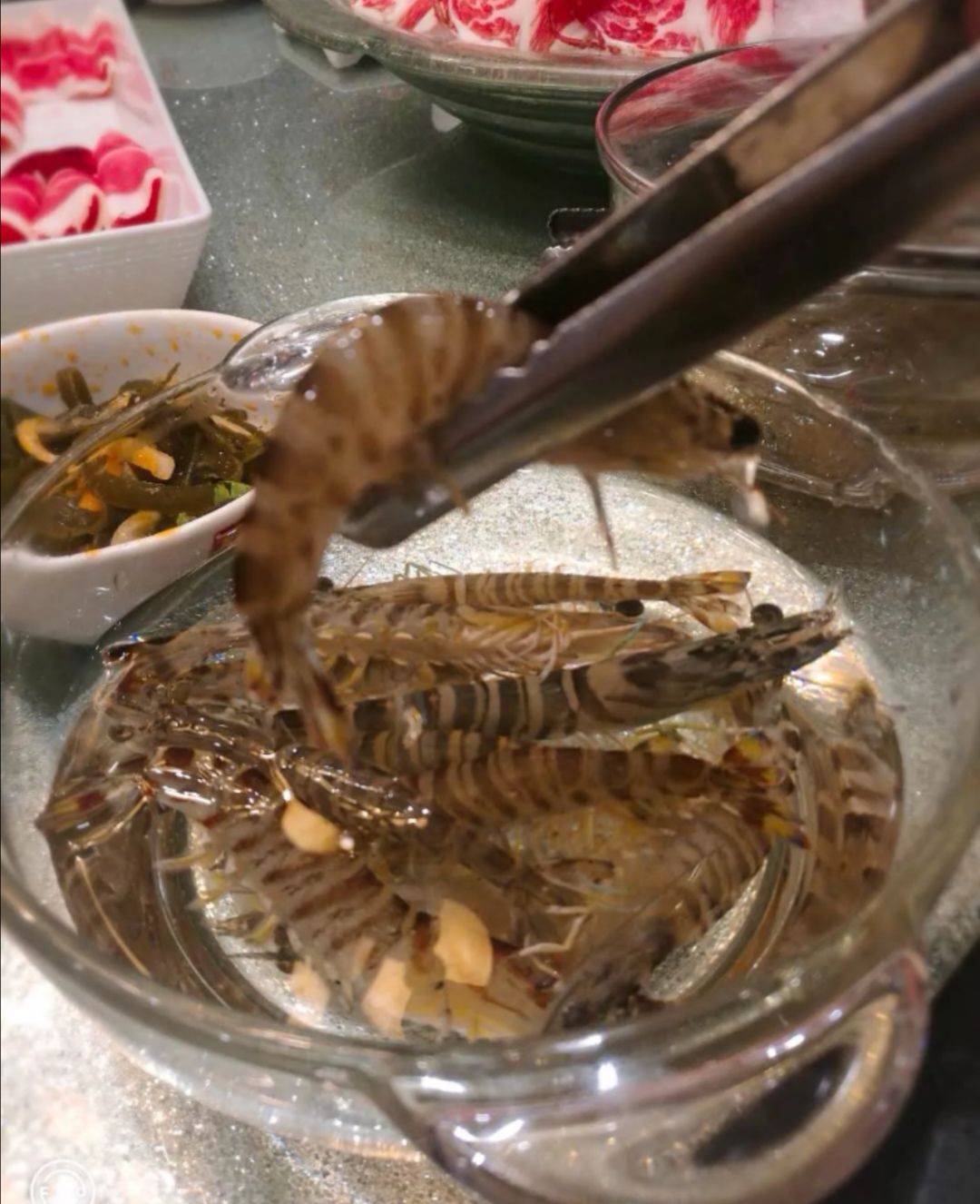 最爱他们家的斑节虾和鲍鱼,鲍鱼和斑节虾都是活的上来的,进锅的时候虾子还会乱蹦,当心水会溅出来,...环境一如既往的很棒,最爱他们家的斑节虾和鲍鱼,鲍鱼和斑节虾都是活的上来的,进锅的时候虾子还会乱蹦,当心水会溅出来,烫着,毛肚涮一分钟就好了,雪五花肉很棒,很嫩一点点肥,很有满足感。