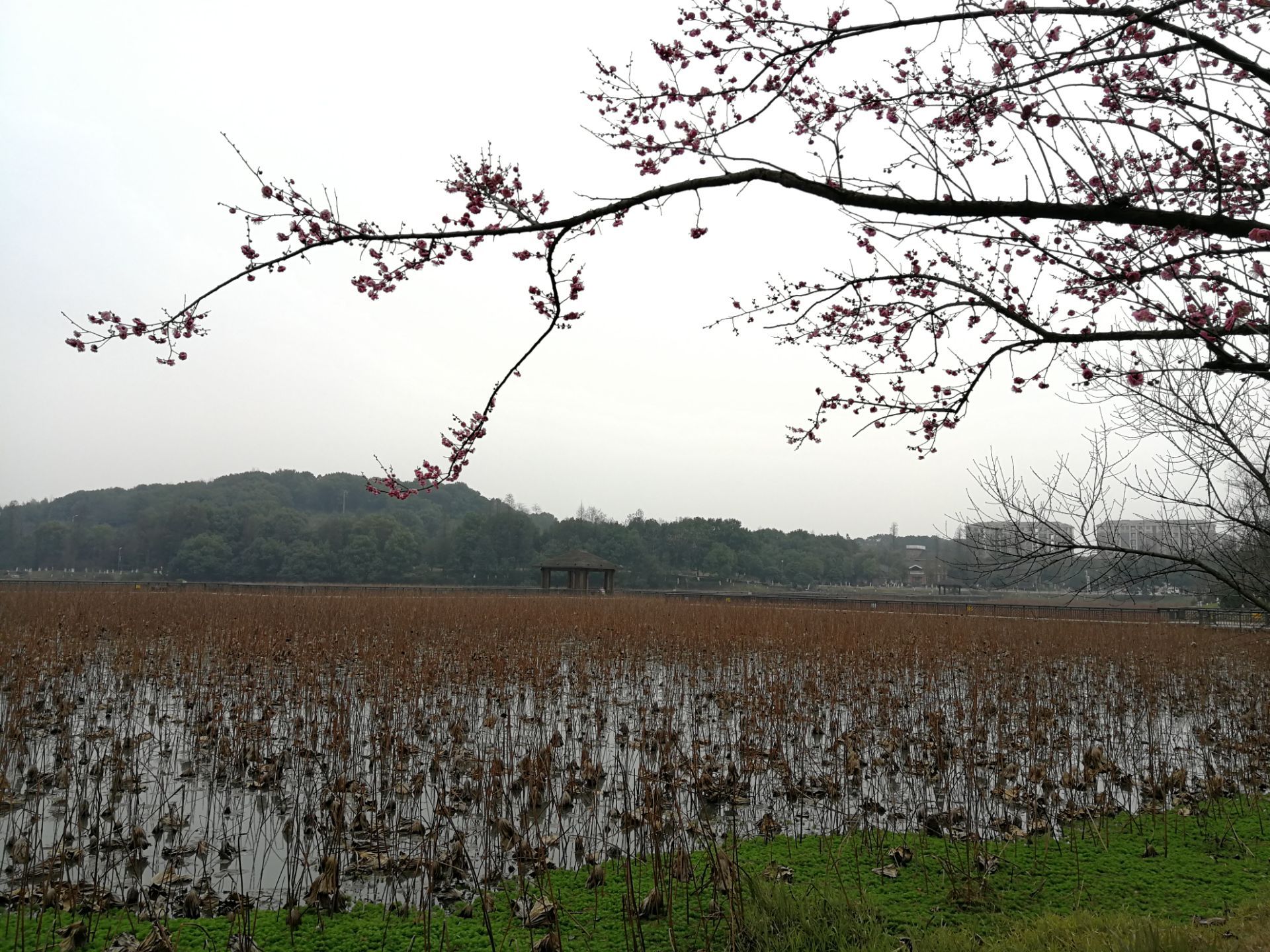 大年三十逢立春日逛南湖公园,湖面残荷遍布,湖边红梅怒放,相映成趣大年三十逢立春日逛南湖公园,湖面残荷遍布,湖边红梅怒放,相映成趣。偶遇园内几株腊梅,鲜艳的黄骨朵仍傲立枝头,惹人怜爱。应了那句"数点梅花天地春"。