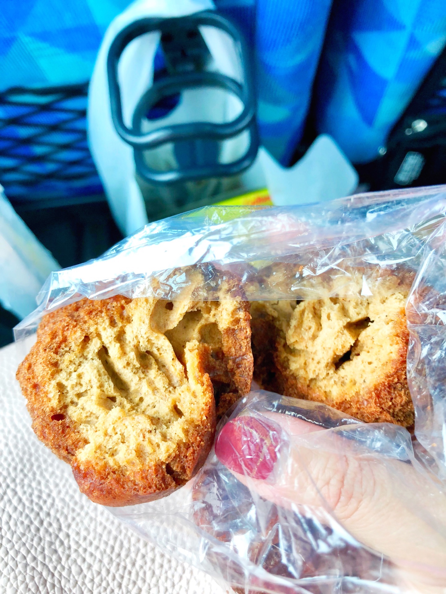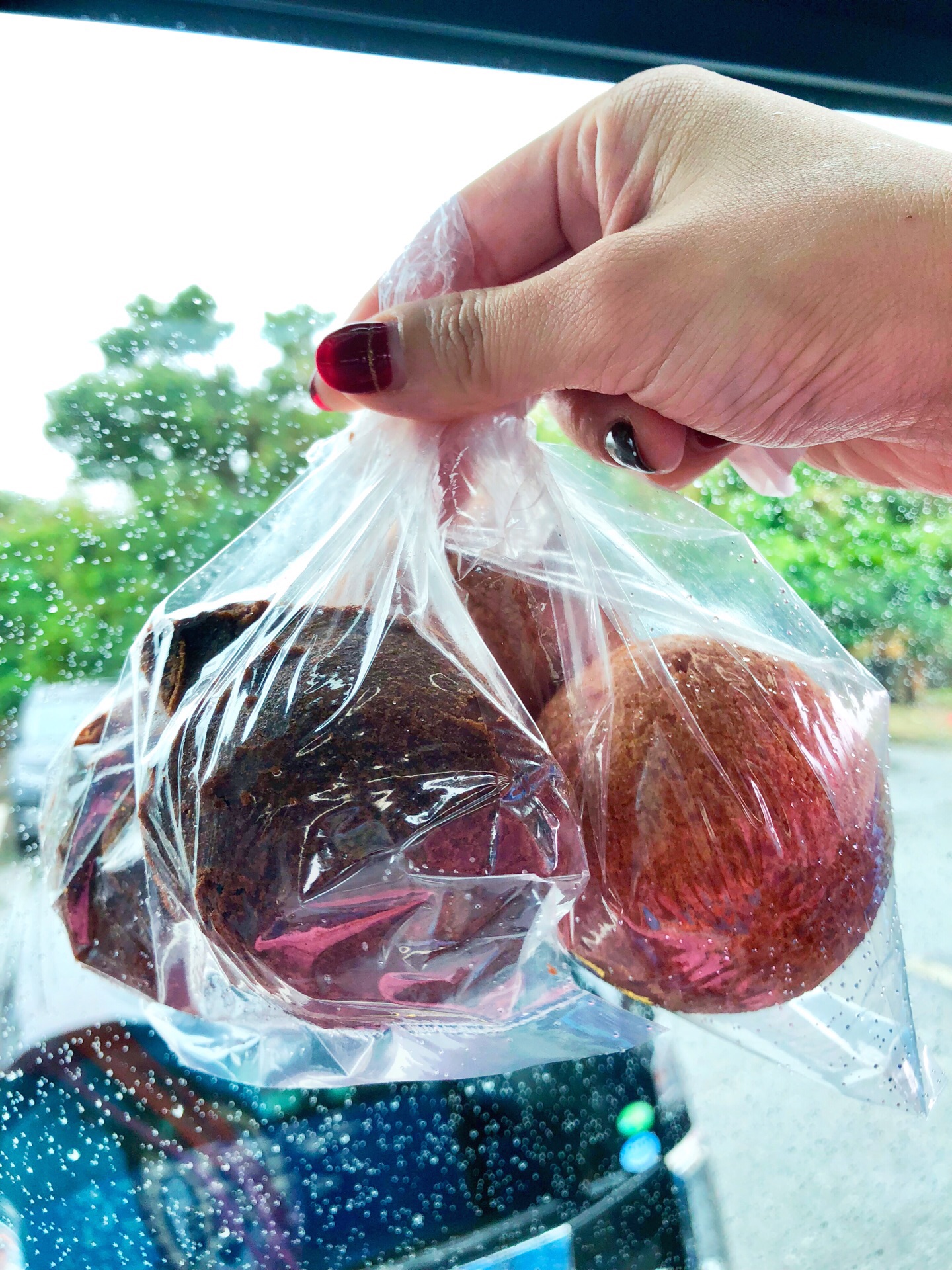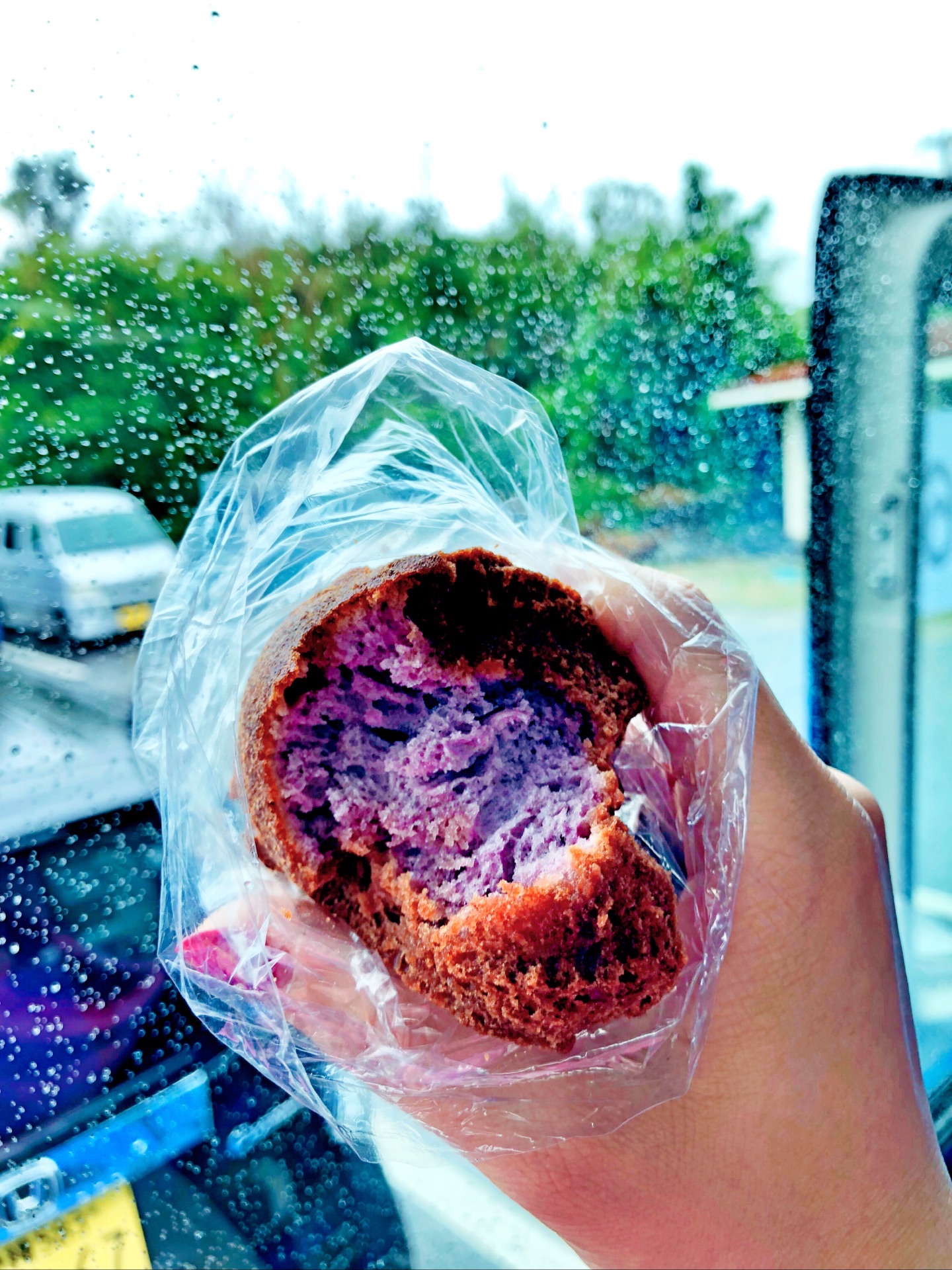 两个奶油的,一个紫薯的,一个黑糖的,口感像麻球又像蛋糕,超级好吃