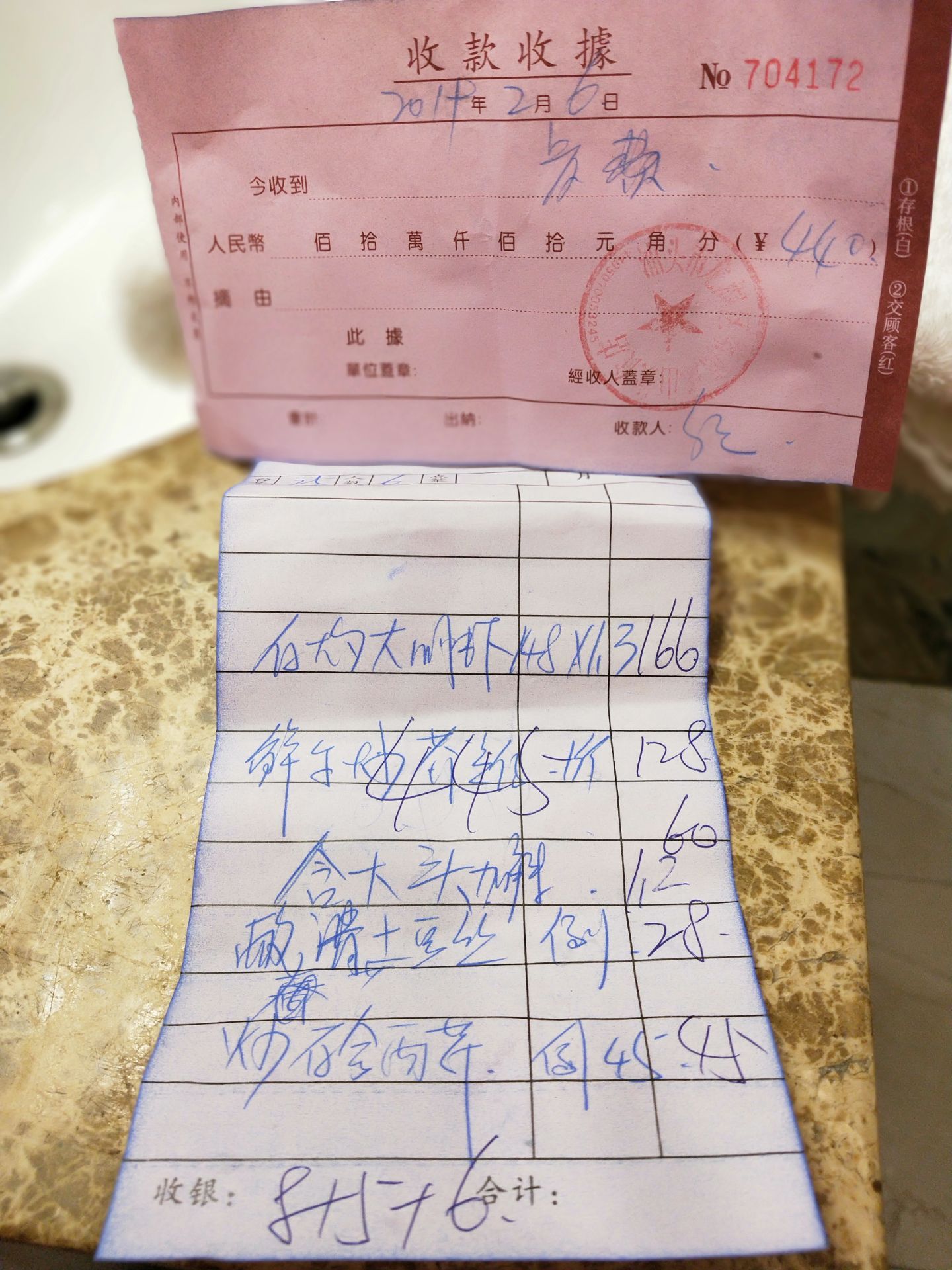 ...8元,我们发现上的土豆丝和别桌不一样时,老板给的回复,有大小份之分)结账时索要发票,老板说没有