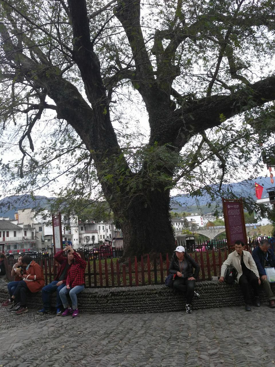 网友2019-02-06...里过了小桥就出了宏村 两个古老的树守护者古老的宏村 很是壮观 特别是到秋天的时候 这里一片金黄红白古树指的是宏村的古老的银杏树和红杨树 这里也是宏村的导游带你游玩宏村的重点 从这里过了小桥就出了宏村 两个古老的树守护者古老的宏村 很是壮观 特别是到秋天的时候 这里一片金黄