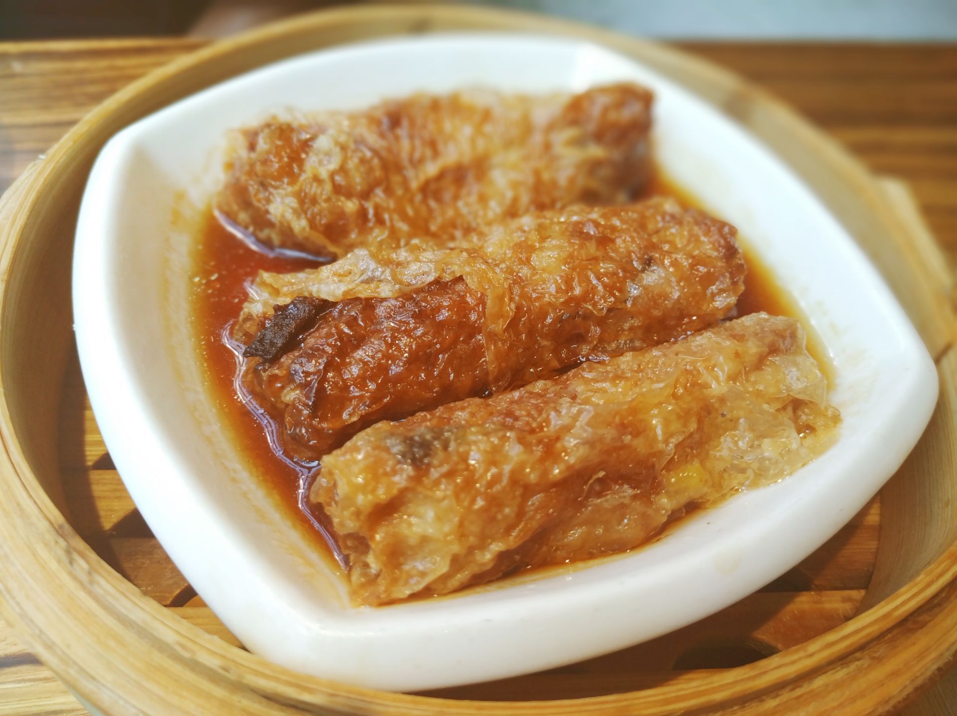 大年初三看完电影在万达金街很多店都还没开张,选了这家吃茶点。 门面和大堂都装修得很漂亮舒适,摆盘也很好看,就是碗和茶壶都有缺口。 蚝皇鲜竹卷味道一般,没有特别喜欢。蒸凤爪是我喜欢的保留内容,每次都会点。蟹子烧麦黄味道很鲜美。奶黄千层糕卖相不错。因为牙疼点了两份粥,粥都熬得很稠,很香。 服务稍有欠缺,不热情、不主动。