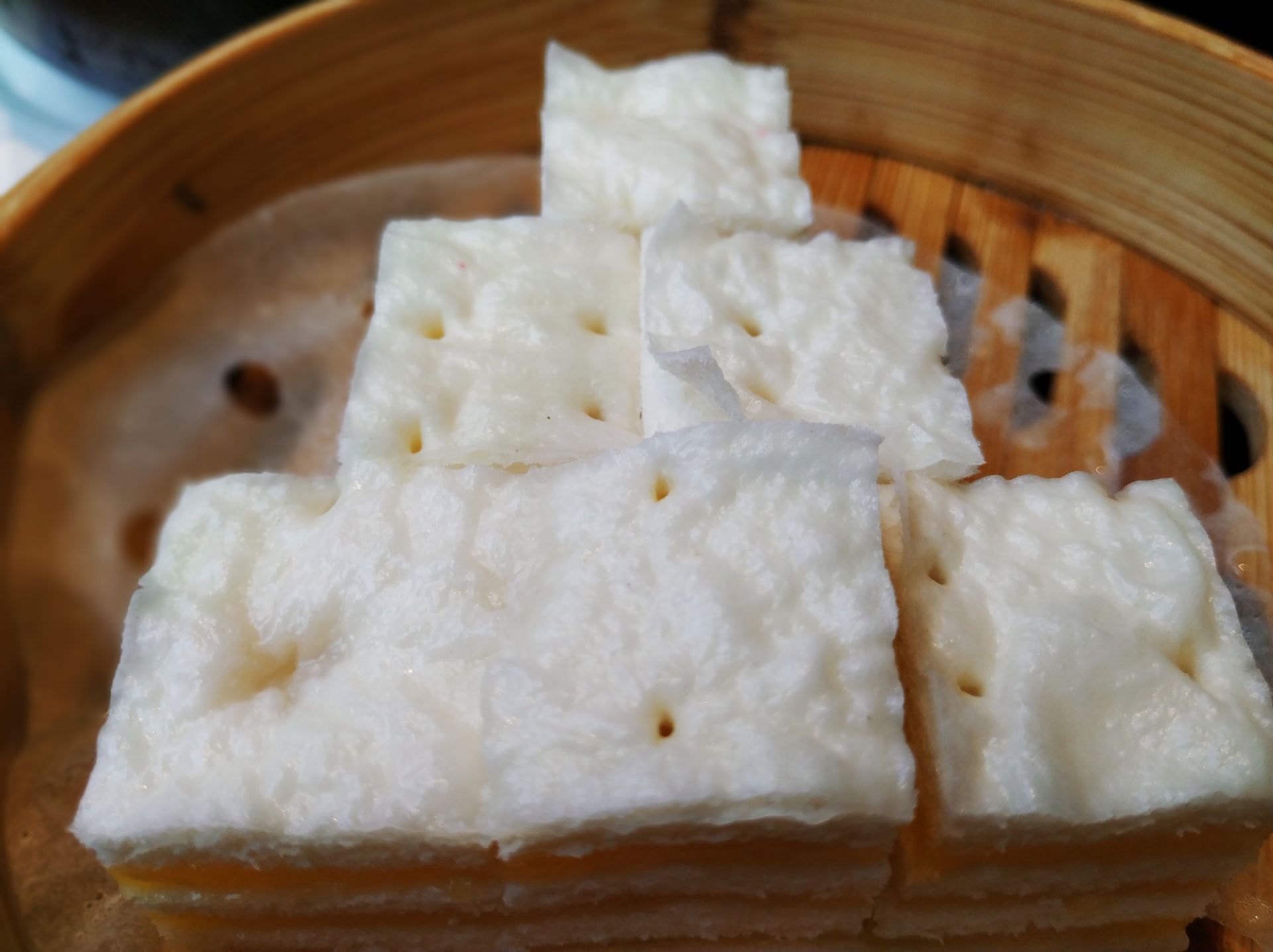 门面和大堂都装修得很漂亮舒适,摆盘也很好看,就是碗和茶壶都有缺口。奶黄千层糕卖相不错