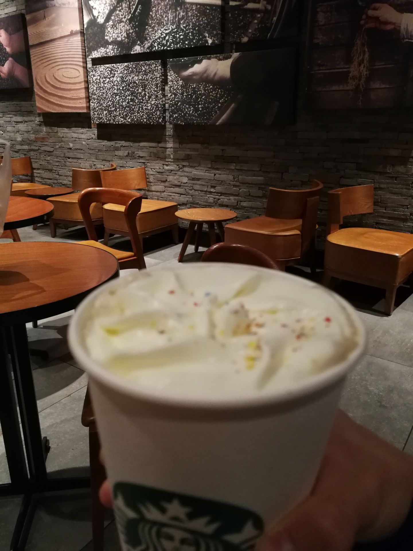 在附近吃完晚饭,顺便到星巴克小坐一下,最近有两杯优惠套餐券,原价80两杯的新年特饮才59,感觉划算很多。可能是这一季的新品快结束了,三款任选也只有两款了。难得这个店晚上人不多,出品比较快,环境也不嘈杂,玩玩手机,聊聊天还挺惬意。