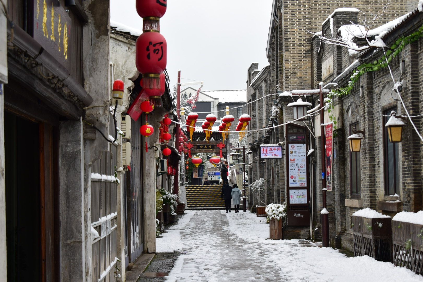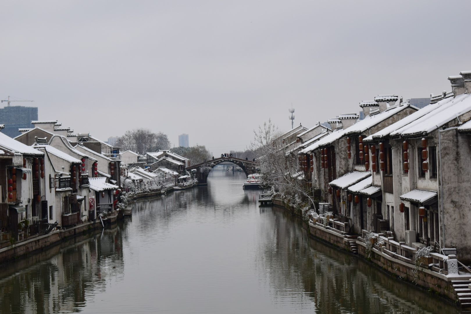 是南长街的一座古桥,在桥上看风景,在桥下的人看你看风景。以前来往的船只在这里停靠,兜售东西,和岸链接的那块板有点晃悠。