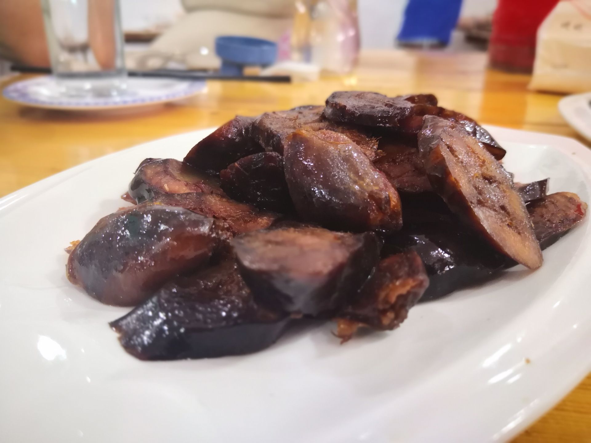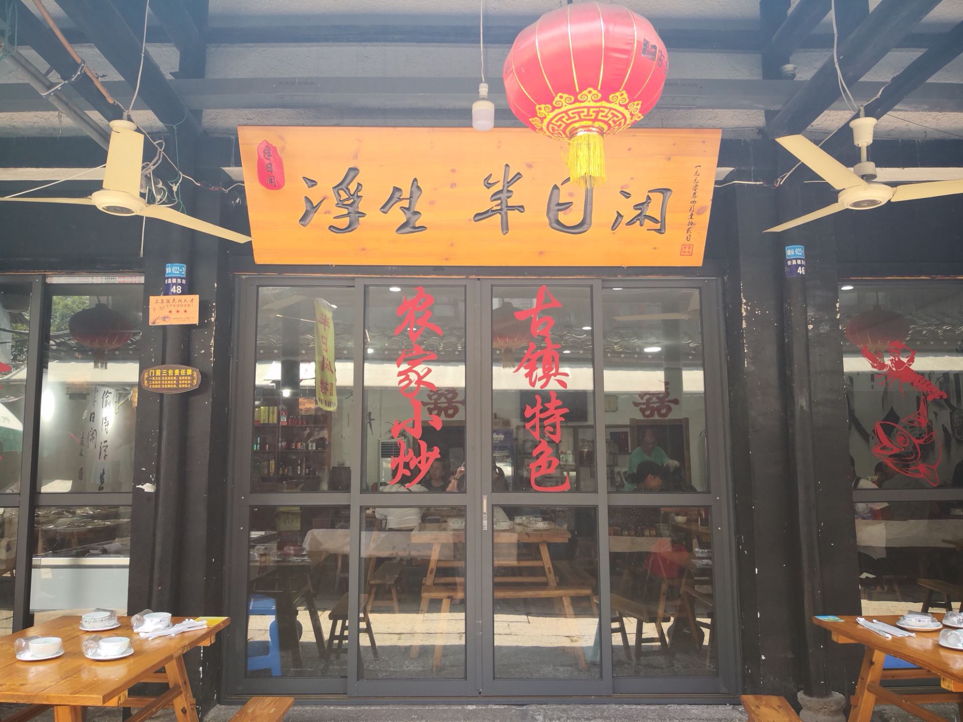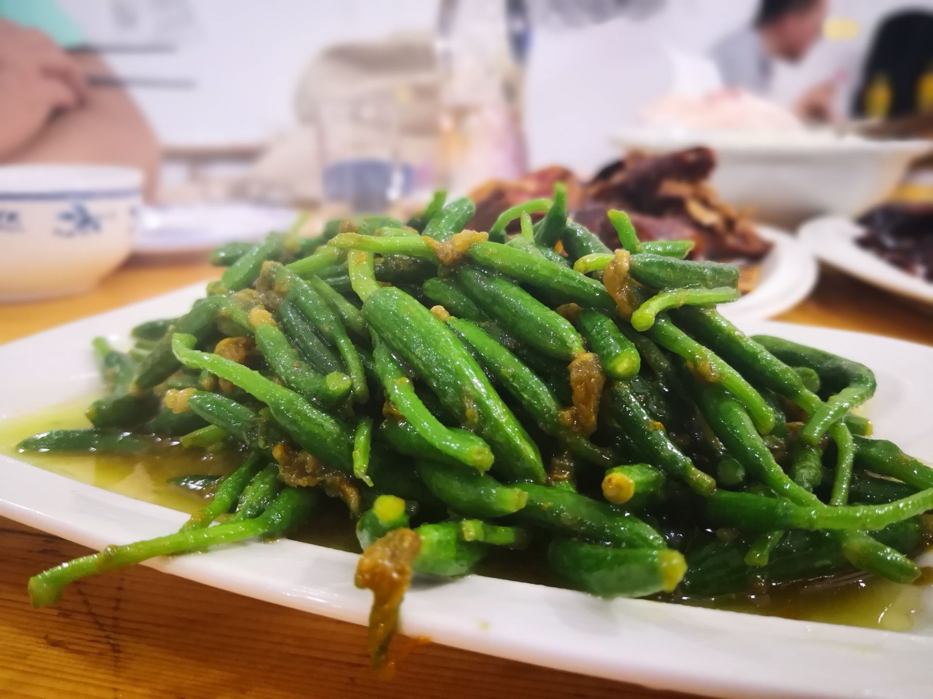 中午,在安昌古镇上觅食,对街上得食店没什么概念,于是便在饭点走到哪家便是哪家了。 可无论选择哪家,古镇上的特色都是必须要点的,于是点了份酱鸭,一盘腌制香肠,还有盘正水嫩的黄瓜秧。 酱鸭肉质偏瘦,口感略咸。 腌制腊肠,口感当然也是咸的,却是那种越嚼越香的味道,也颇有嚼劲。 两道主菜都有些咸,所以,对于点的那盘嫩黄瓜特别喜欢。