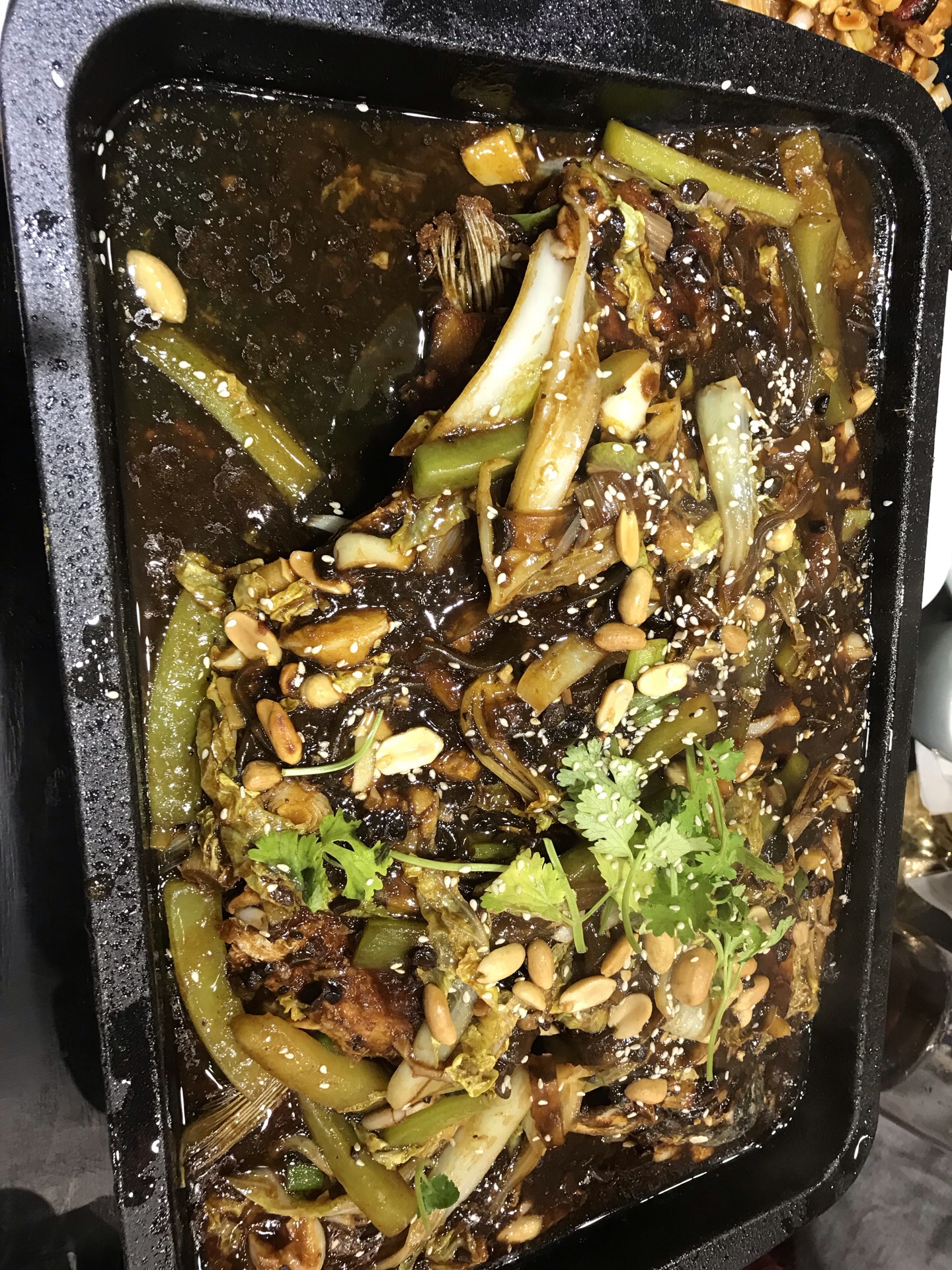 豆豉味的烤鱼,料很足,很有味,只是上的太慢了,非常慢,比别的菜慢了足足四十分钟,其他菜品基本上二十分钟内就上齐了,所以都吃饱了,等烤鱼上来基本就没有吃了,只好打包!打包餐盒还收费!这店家也真是太会做生意了吧?!上菜速度慢明明是你们自己的责任,不给退菜,还要让我们再掏钱打包!