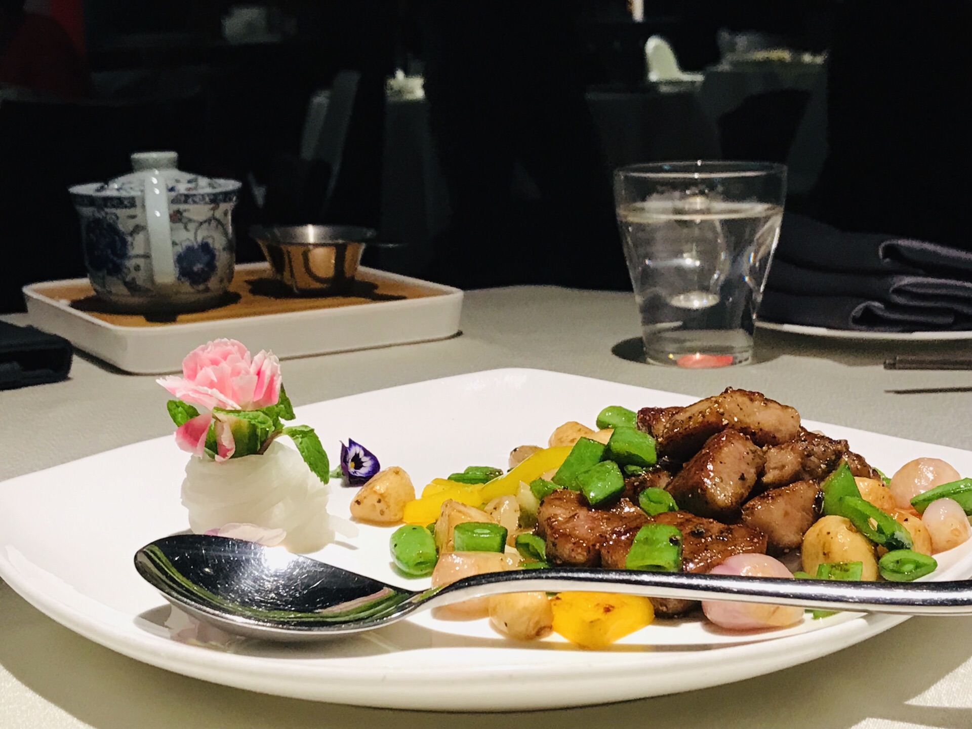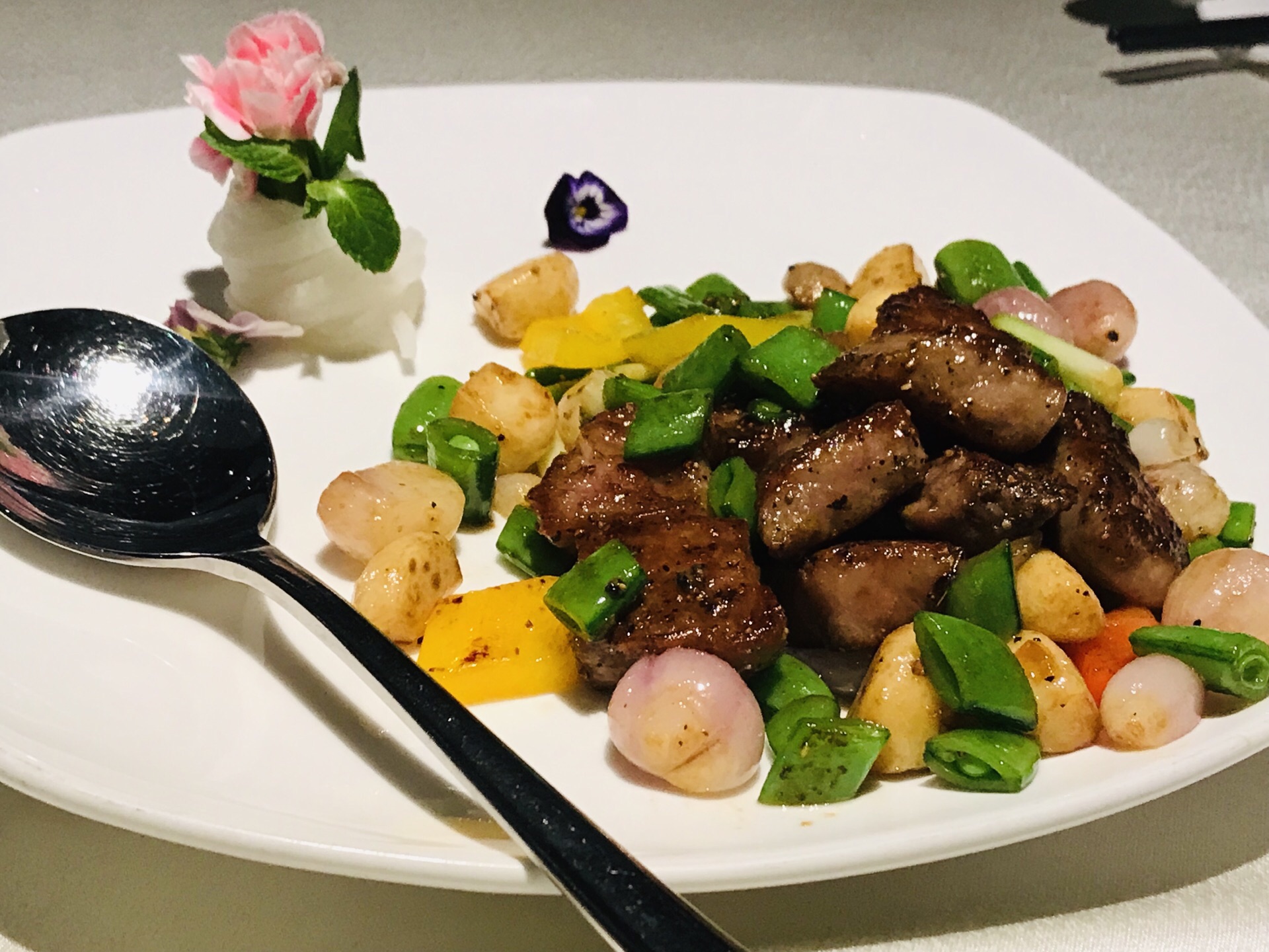 茉莉花茶28元一位 适合喜欢热饮人士 奇异果汁58元一杯 过年喝果汁清肠胃 家乡萝卜干炖红头鸭汤98元一碗 就是清汤 没有办法 吃饭总要喝口汤汤水水 这个汤是一直炖着的 滚烫的 黑椒爆炒雪花牛肉粒498元 牛肉没有牛排哈特好 但是比其他米其林牛肉都好了 苏格兰龙虾48两3062元 过年吃龙虾 鸿运当头 好大的龙虾 肉是新鲜 可以刺身 葱姜 椒盐 避风塘 粥 那么大龙虾两吃太少了 可以三吃了 龙虾几吃 下次可以按照几人就餐来选择 不用就两吃那么单调 姜葱捞面底68元 湿毛巾3元一条 餐前水果和小食不错 糖莲子 新年甜甜蜜蜜 早生贵子 当然先找到生子对象 哈哈哈 脆皮流沙包 不错 杨枝甘露 正常粤菜水准 凉凉的 陈皮红豆沙 陈皮味重 热气腾腾 服务费百分之十 还是值得 服务勤快