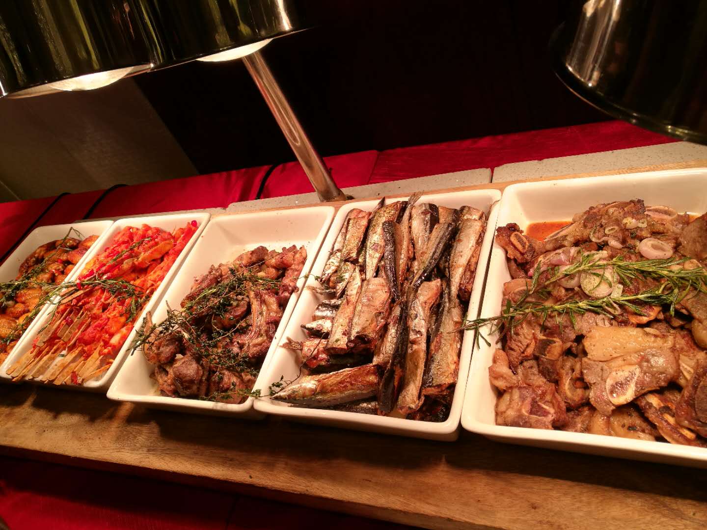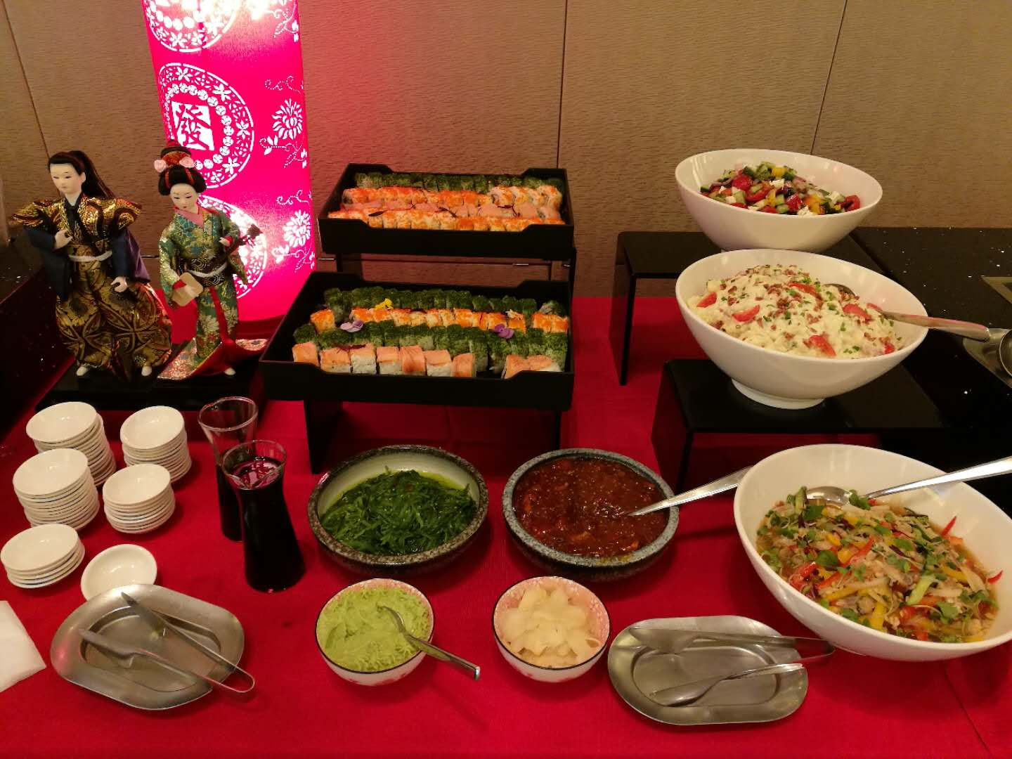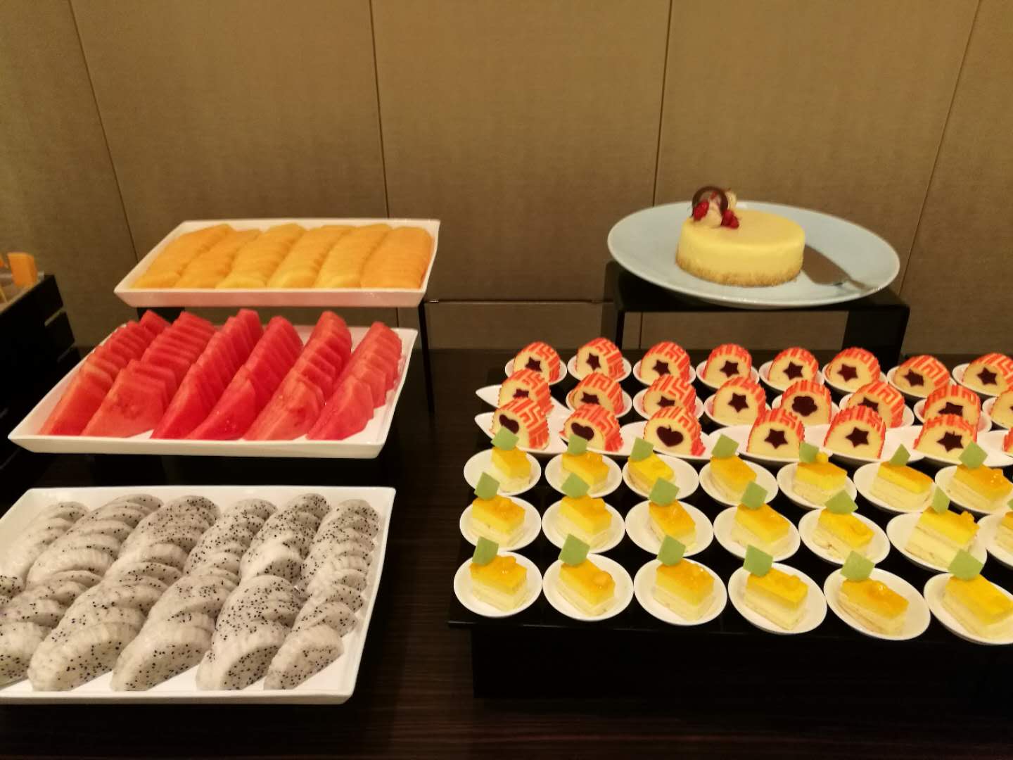 年夜饭订在这里吃,很不错,环境优雅,价格比平时要贵一倍,300一人,食材新鲜,味道也超棒。主要整个场地的两边各有一个超大屏幕直播春晚。 羊排,牛排,烤秋刀鱼都很不错。量也充足。 海鲜类的有蟹脚,青口贝,扇贝,甜虾,章鱼,三文鱼,金枪鱼,北贝贝等,个头很大又新鲜,切片厚实。 相对来说寿司的品种最少,但味道不错。 热菜类的叉烧、烤鸡、烤鸭等给人印象最深刻,切的厚实又保留好汁水。 点心有南瓜饼,春卷和饺子,南方人过年也尝尝北方的饺子,肉馅的,不错。 甜品区域非常丰富,全家都感觉甜品最出色,草莓塔美观,味道倒一般,每一颗红红的大个头的草莓外裹上了浓厚的巧克力外衣,但是草莓有些硬啦,还有些冰冰的。其他的甜品都非常可口,特别是芝士蛋糕十分的浓郁,巧克力蛋糕,芒果慕斯,布丁等,还有一款上面是酸奶底下是芝士蛋糕的甜品很有特色。 巧克力瀑布区域,是甜蜜蜜的棉花糖、华夫和蜜瓜。