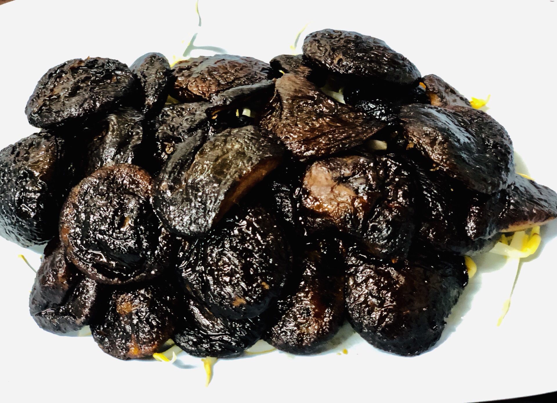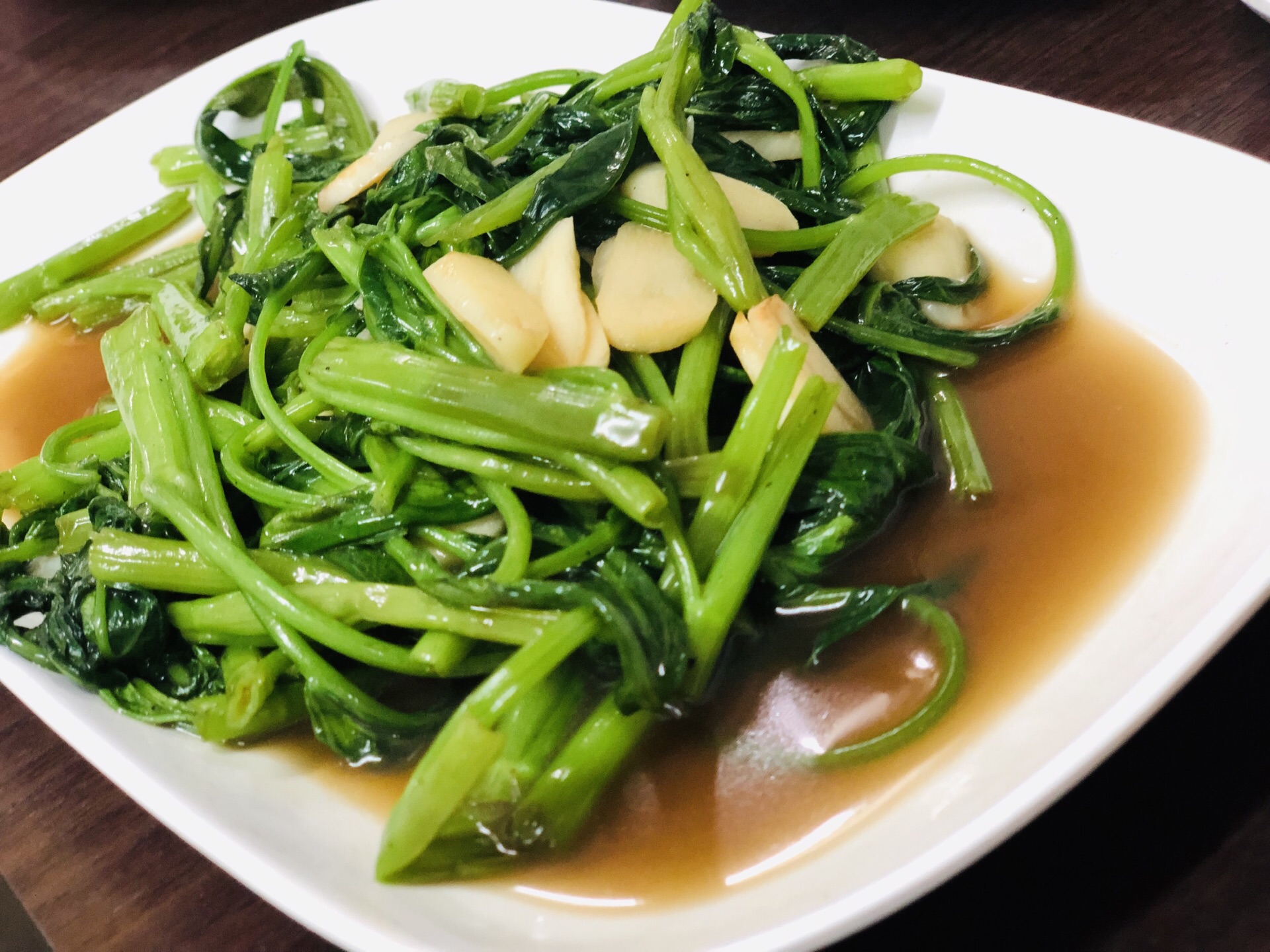 蔬菜就是空心菜,加了蒜头炒炒还挺好吃的。煎的香菇有点偏干,吃了一半就腻了