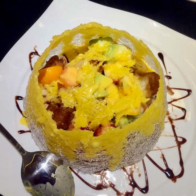 ...路线,【牛油果油条虾】、【含苞欲放 椰奶冻】、【一口香榴莲酥】从餐盘到摆盘都很特别,味道也不错