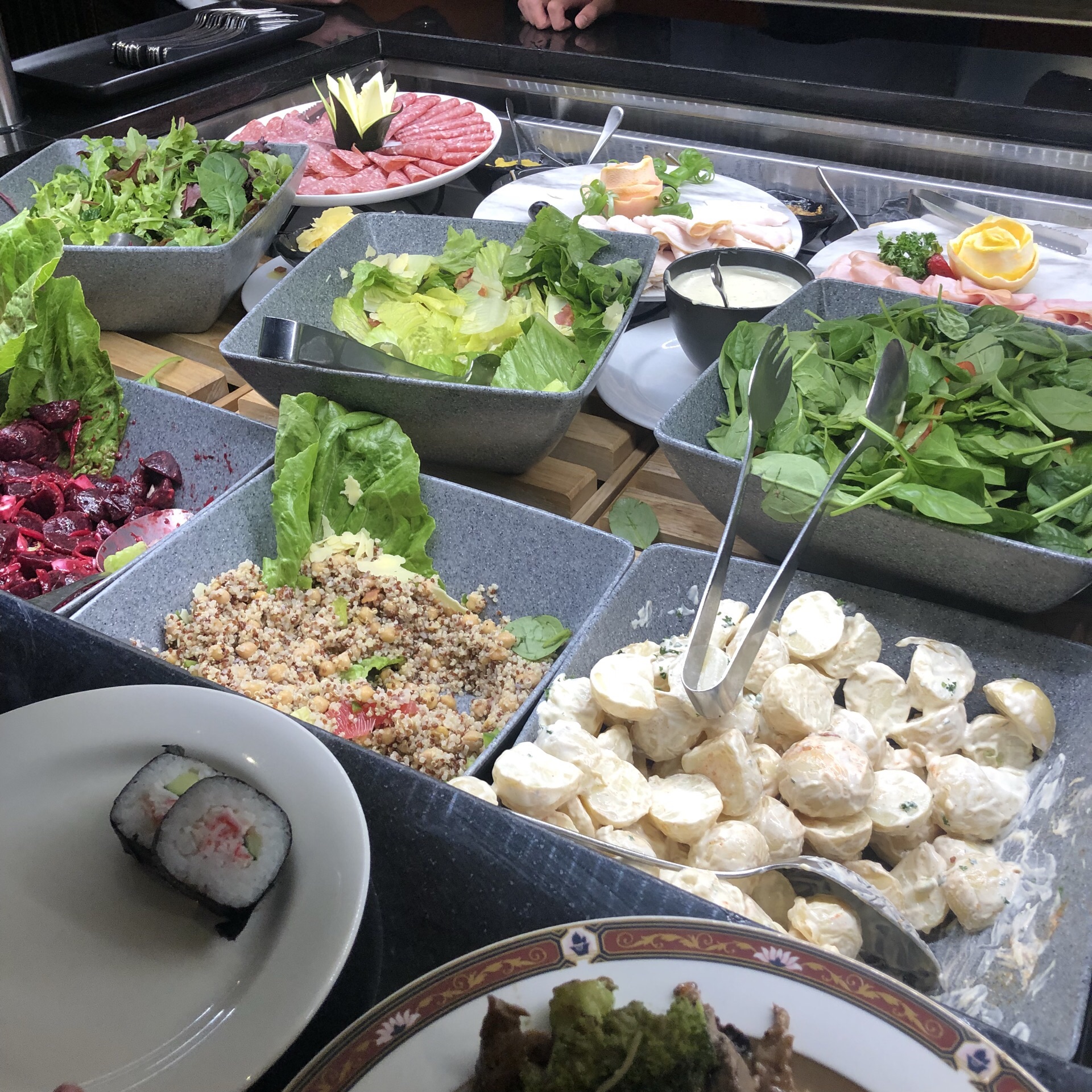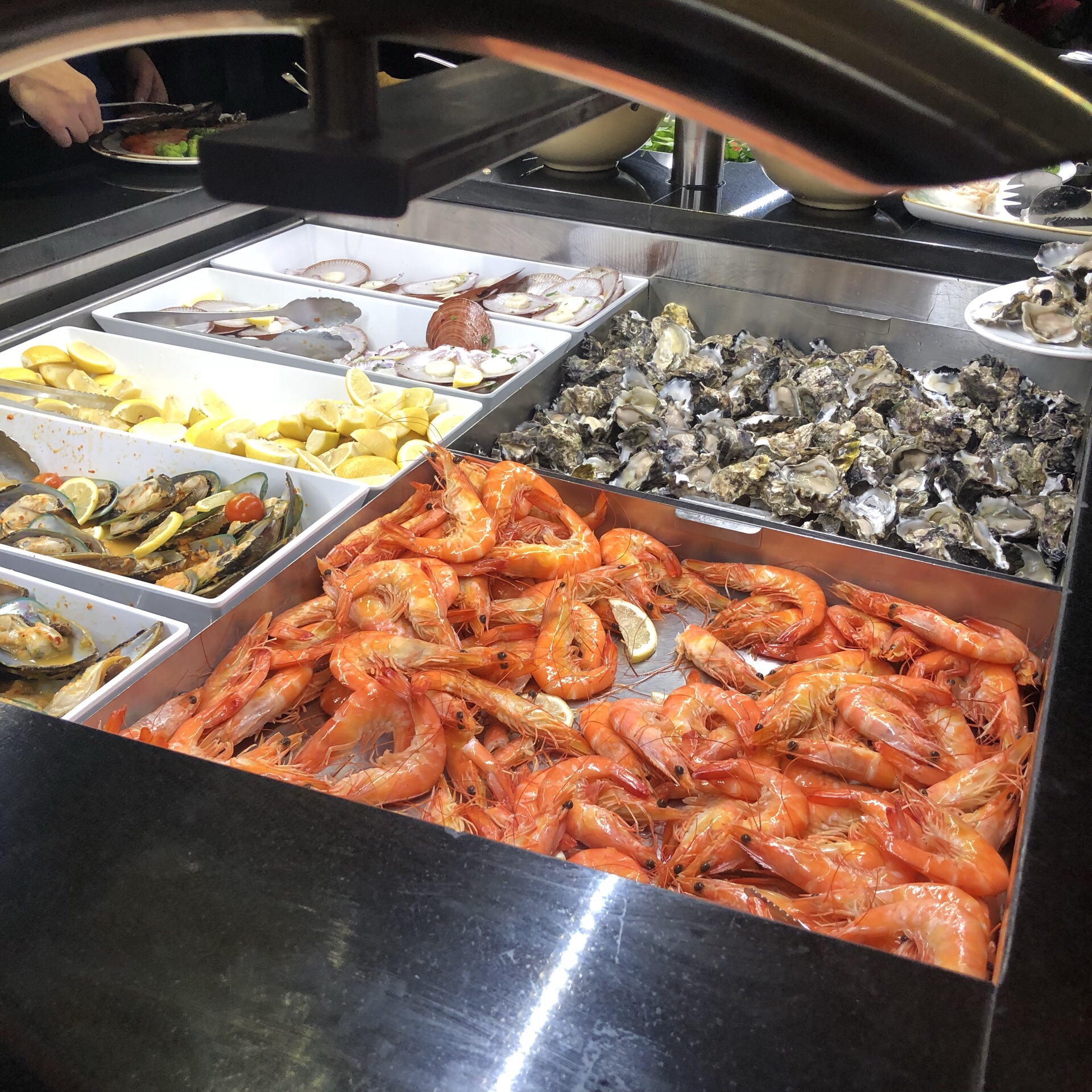 极其普通的自助餐,种类、味道都非常一般…… 日落后玻璃反射室内的光 基本看不到外面