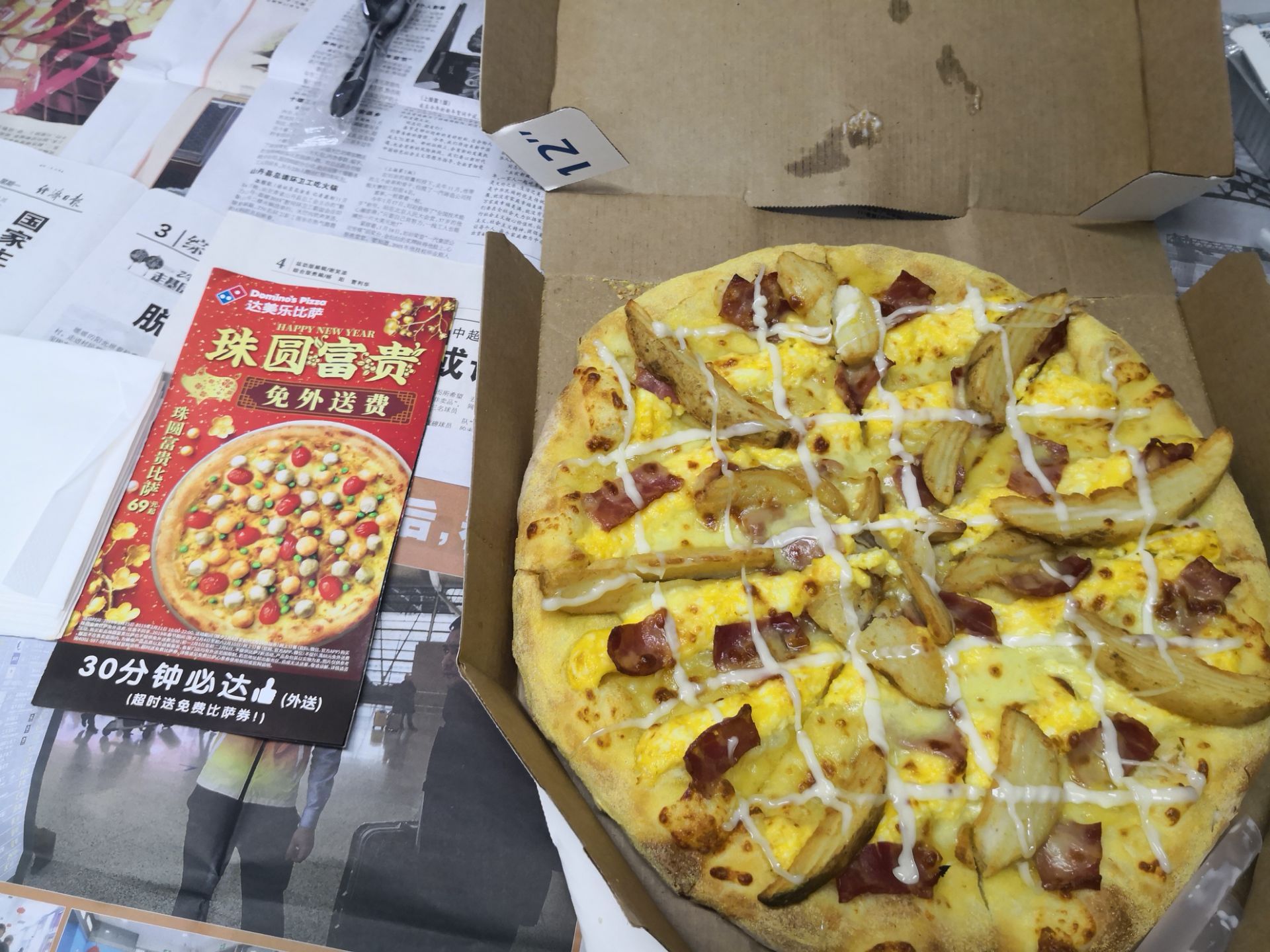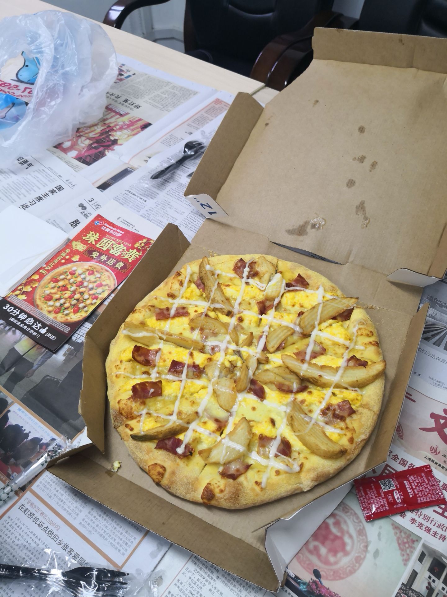 ...根土豆披萨,最大的尺寸,还有经典番茄意大利面,叫的外卖,很准时,价格也比较实惠,量也不少,好吃今天午餐吃了达美乐披萨,点了特色的培根土豆披萨,最大的尺寸,还有经典番茄意大利面,叫的外卖,很准时,价格也比较实惠,量也不少,好吃