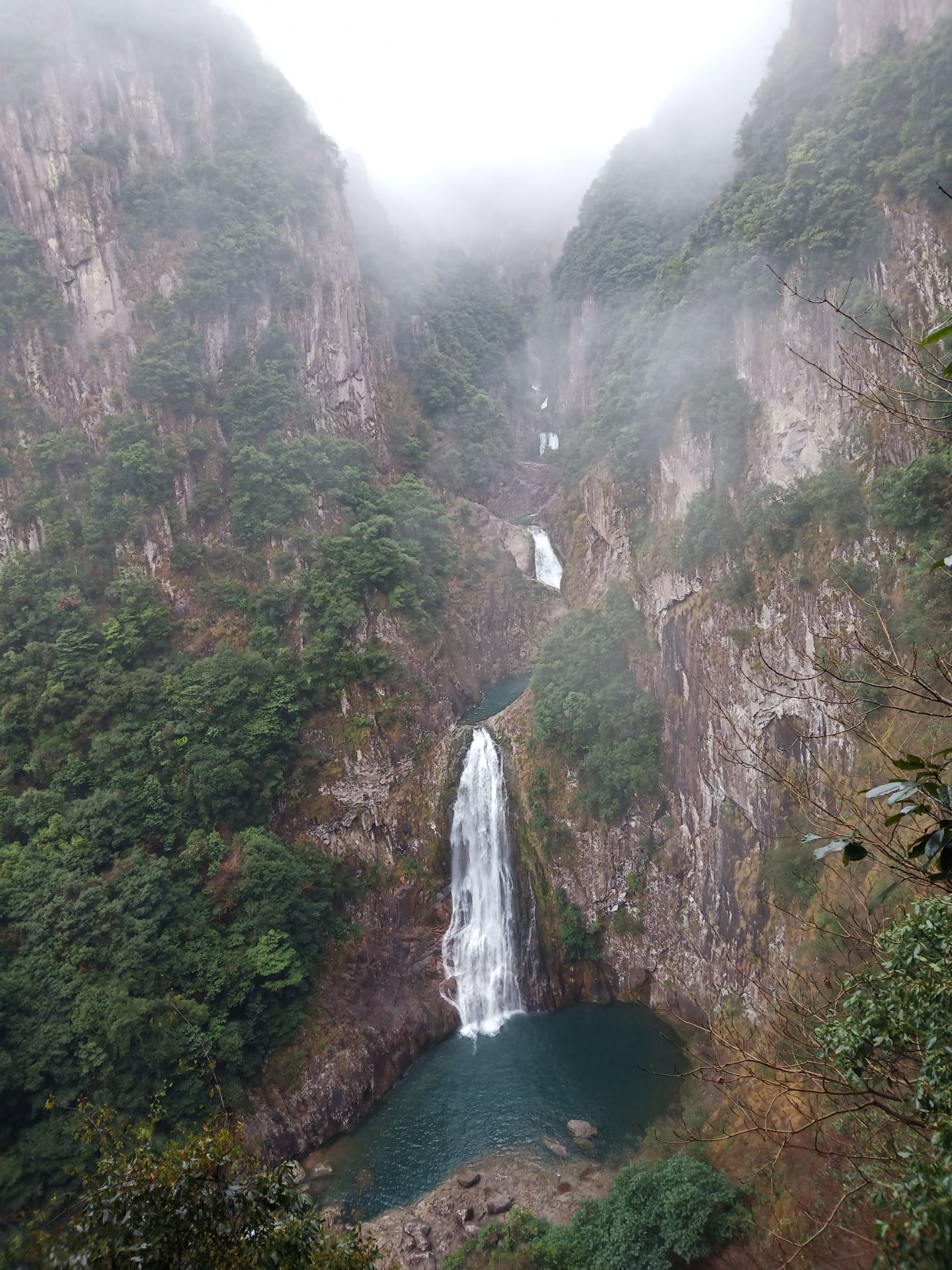 这个景区是雁荡山,楠溪江所有单个景区里面门票最贵的,70,孩子不论年龄超过1.5米就全票。进来后过了一条小河就左转是正确的上山路,结果我们走反了,从下山的路上去了,不但绕远了还差点错过了所有最美的风景,也就是因为下雨所以滑道没有开,要不然滑下来高空玻璃观景台,七折瀑,这两个最精华的景点全看不到了,请后面的朋友注意。沿着溪边走的石板路和栈道是第一段风景,大概三十分钟左右到七折瀑的下面,比大龙湫强多了,这还是在枯水季节,瀑布的声音很远都可以听到,然后就是我最怵的台阶上山路了,大概要走一个小时左右吧,到高空玻璃观景台。这段路有些地方很陡还长,很湿滑,老人家就免了吧。中途会有一个人工搭的鸟巢在树上,孩子可以爬上去照相,很好玩。观景台是U型的很短,但是风景很美,往下看也心惊胆战,刺激。最后下山的路就没什么意思了,有个滑道,三十一位,可以省去不少路,下雨天不开。整个景区全下来3小时左右,个人感觉是这两天在整个雁荡山旅行里最有特色,人最少的景点,除了门票略贵,值得来。对了,停车场免费。