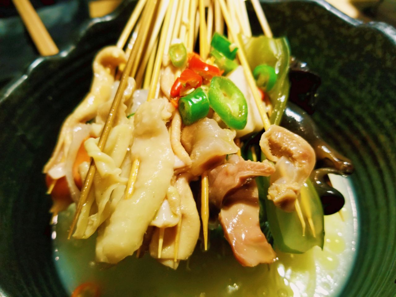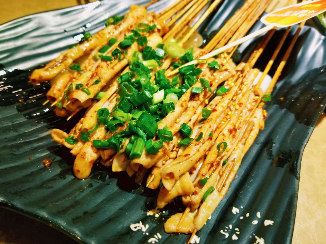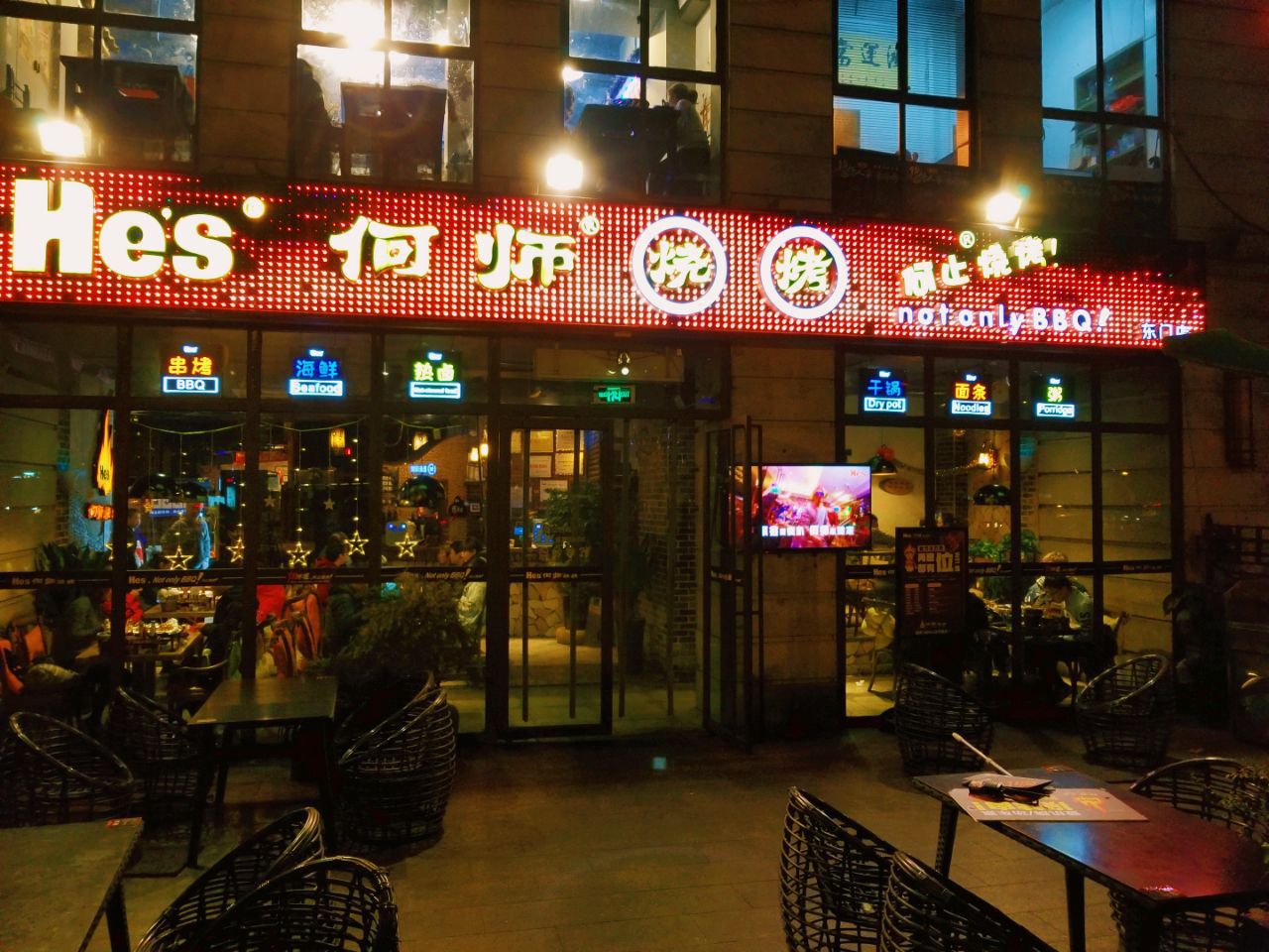 两个东北人,吃遍了东三省的烧烤,用一种试试看的心态去尝试了成都的烧烤,收获了意想不到的味道! 何师烧烤,一家夜啤店,距离太古里不远,走路过去就行,店面装修的还挺有感觉的,网红店风格 藤椒冷锅串串,麻辣适中。 一把鸭肠,口感脆,味道好吃。 招牌五花肉,火候刚刚好,烤出来微麻辣,很香麻辣排骨串,麻辣味道刚刚好,很香。 藕的味道一般。 脑花味道有点接受不了,不是麻辣的,有点腥