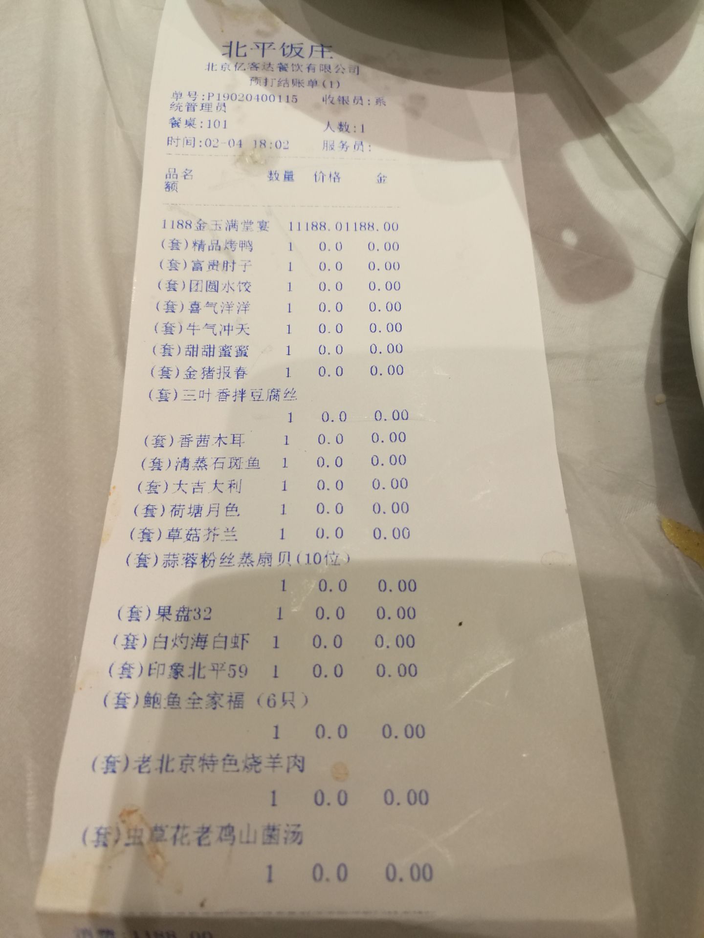 年夜饭虽然都是套餐但菜品搭配的还可以、菜量确实比较大、价格也不贵,上菜速度比平时稍慢一些还可以...年夜饭虽然都是套餐但菜品搭配的还可以、菜量确实比较大、价格也不贵,上菜速度比平时稍慢一些还可以接受,烤鸭还是保持了一贯的水准,这个套餐桌子有点小了。