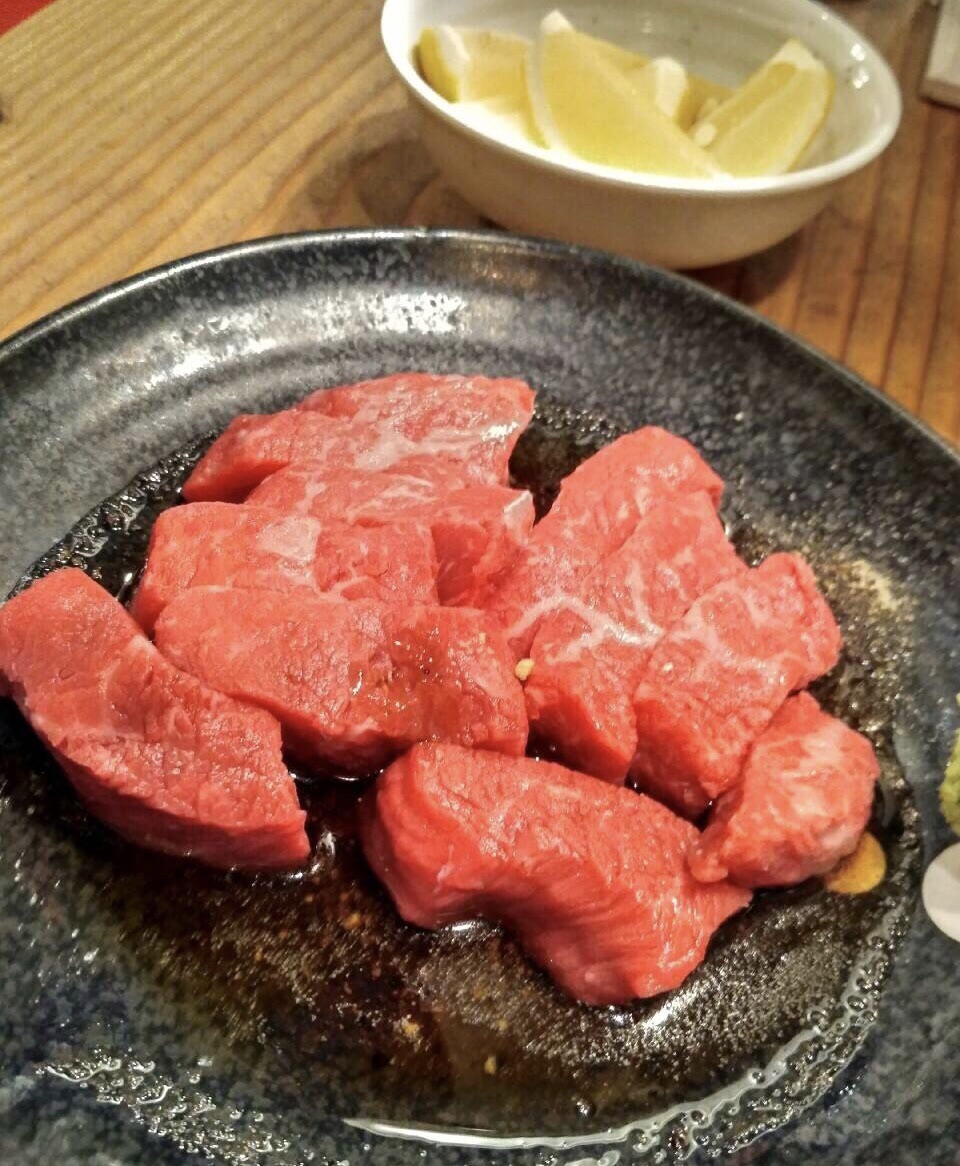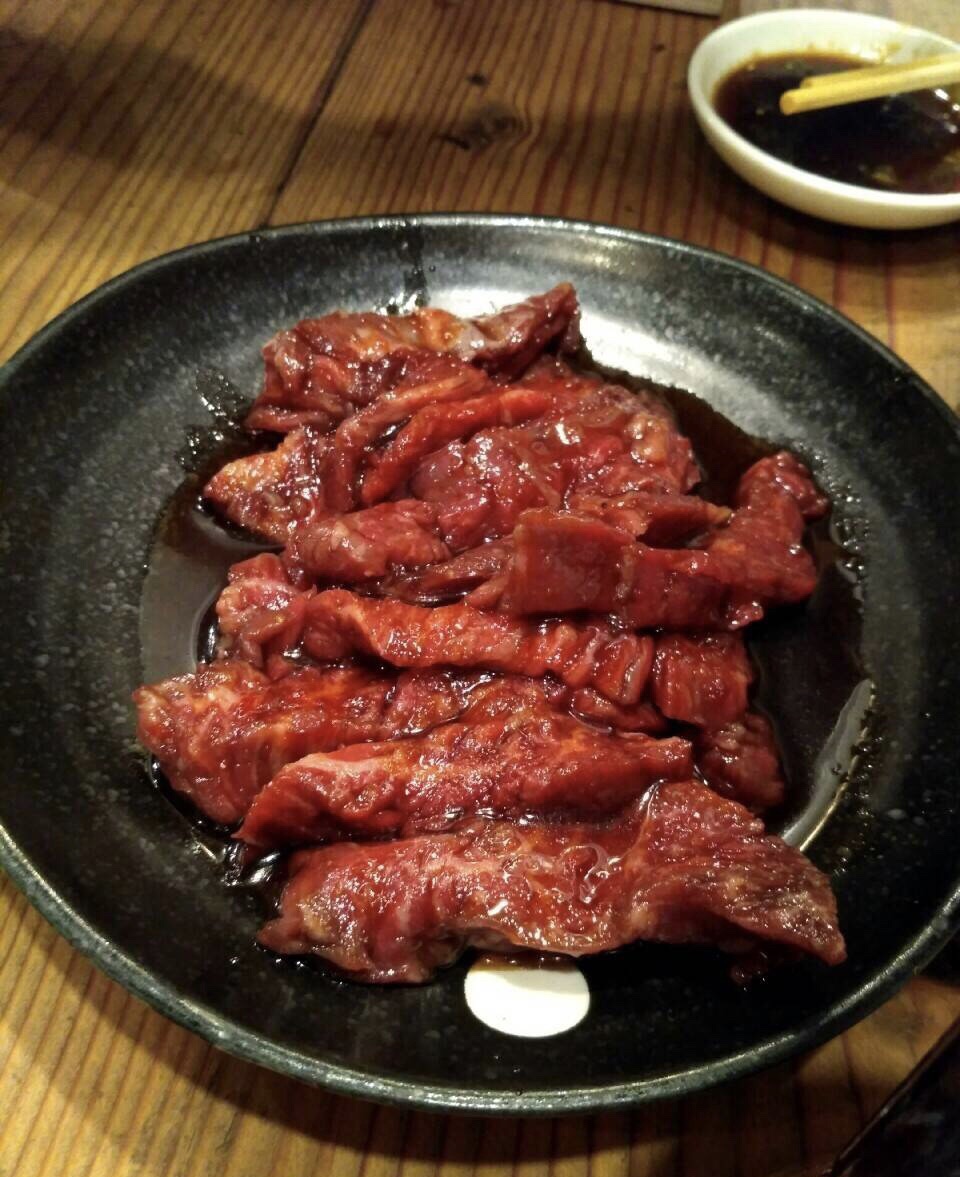 号称关西第一的大阪万两烧肉。只定到晚十点位,夜坐阪急电铁往返两个半小时。心情大好。不论牛舌横隔膜牛肩牛肠都好吃到飙泪。这才是我本命啊!遗憾是好几种肉都卖没了。家属说这家店都用A5和牛,但最贵的也不过十五刀一份。我说恭喜你在这一刻达到美食史巅峰。